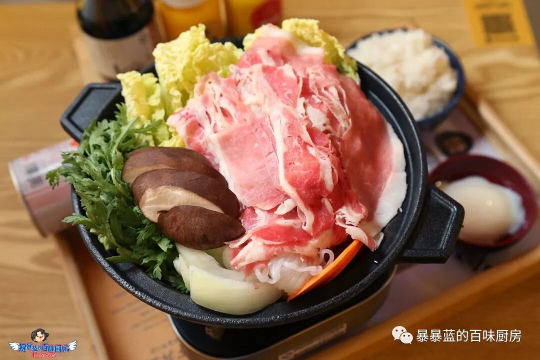 寿喜锅比较传统,甜甜的汤汁,厚实的美肥,重点是现在天气越来越凉,只要40多块钱,小火炉就给你支起来了!