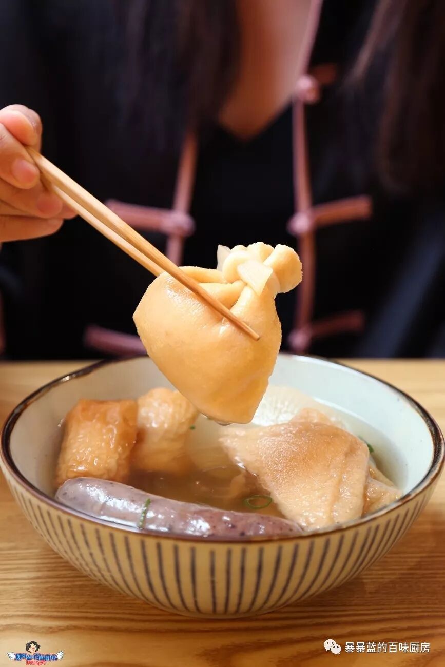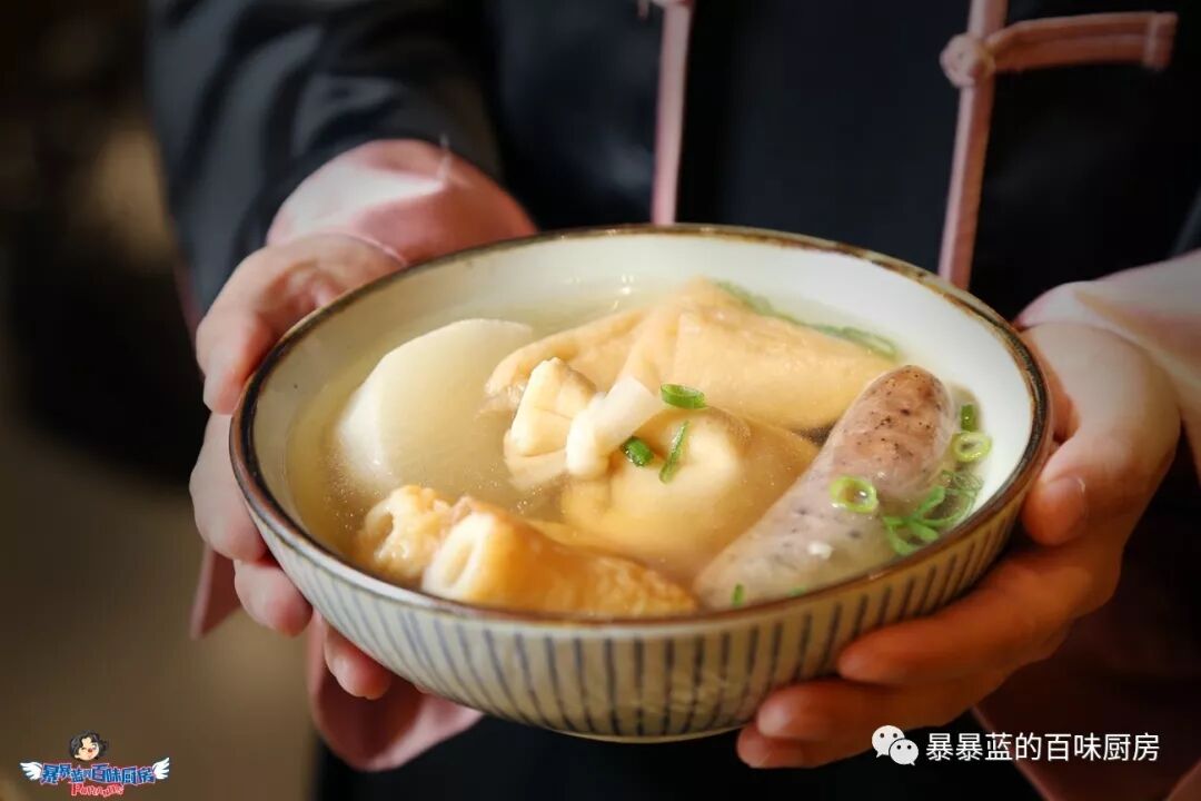 关东煮跟在便利店见到的不太一样,用昆布和鲣鱼加上木鱼花熬汤,里边煮的不是一大堆丸子,都是日式小吃的特色食材。