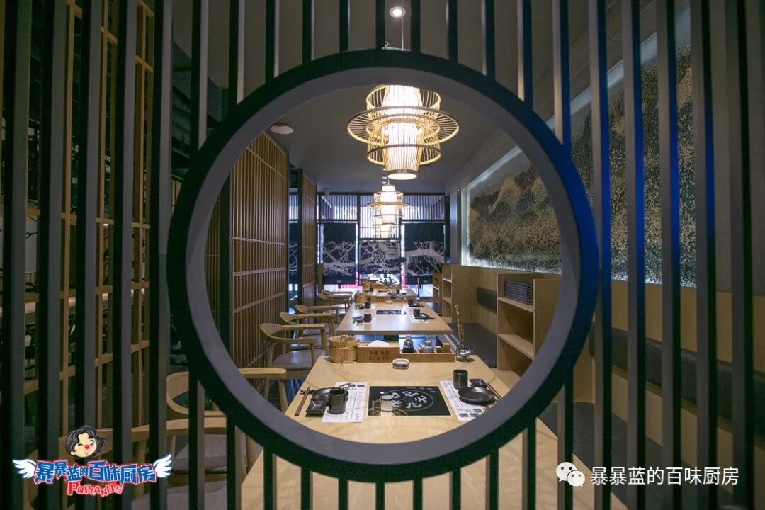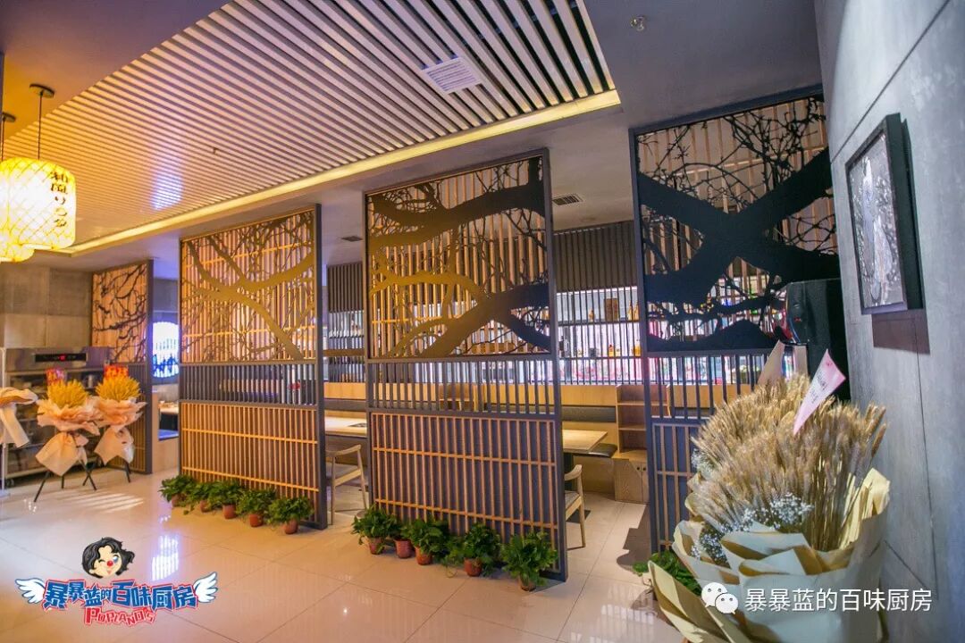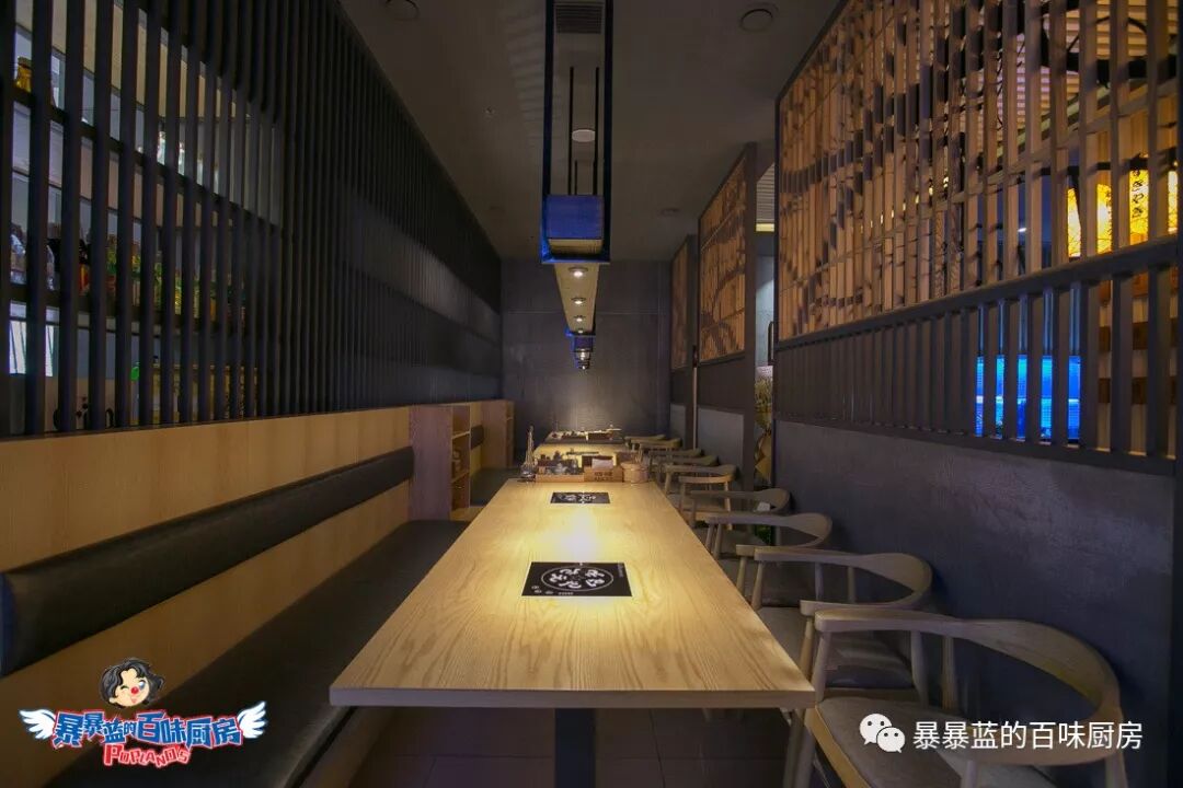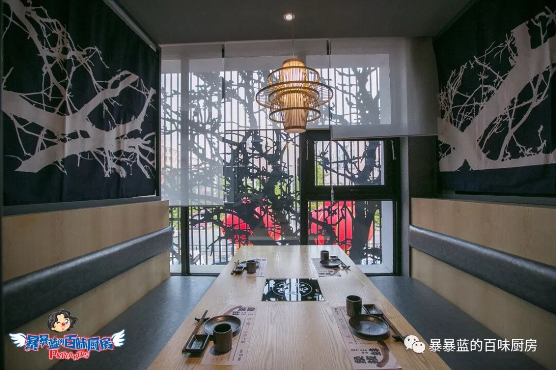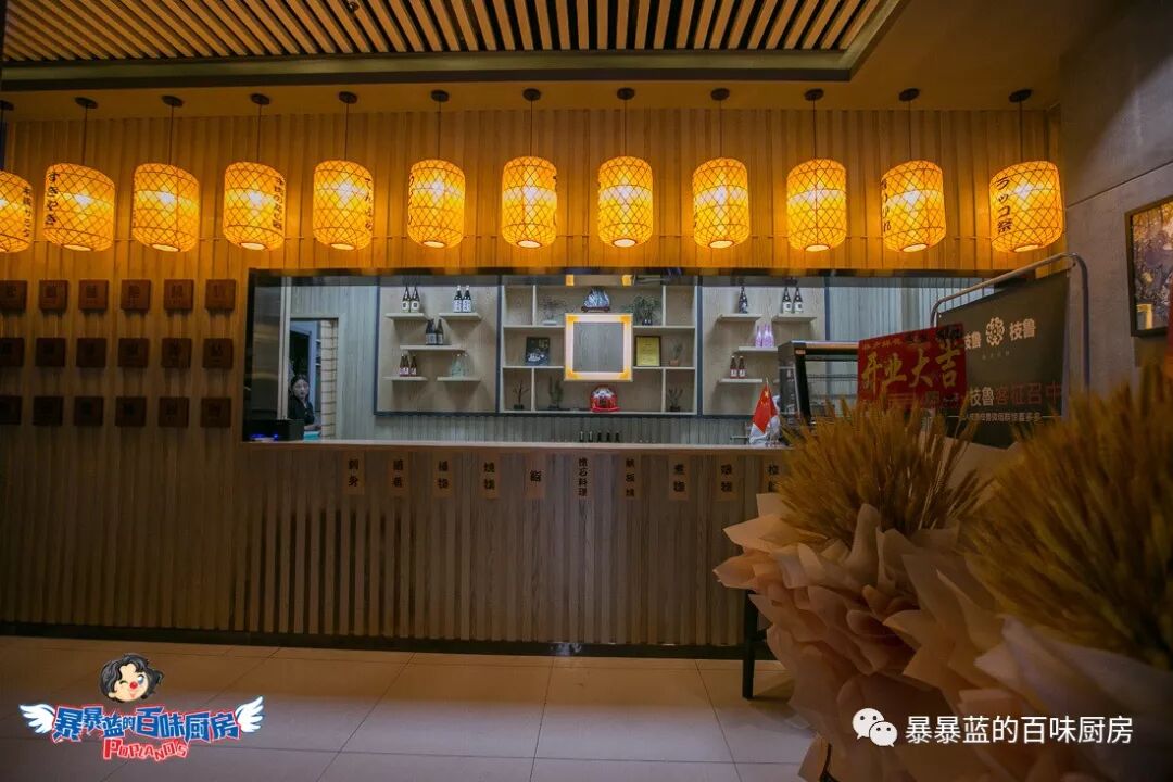 枝,代表树木;鲁,上面是鱼生下面是太阳:这两个字放在一起是大自然的原始美,这美由幽暗的灯光、实木的桌椅、高级黑的铁艺渗透式地传达给食客。