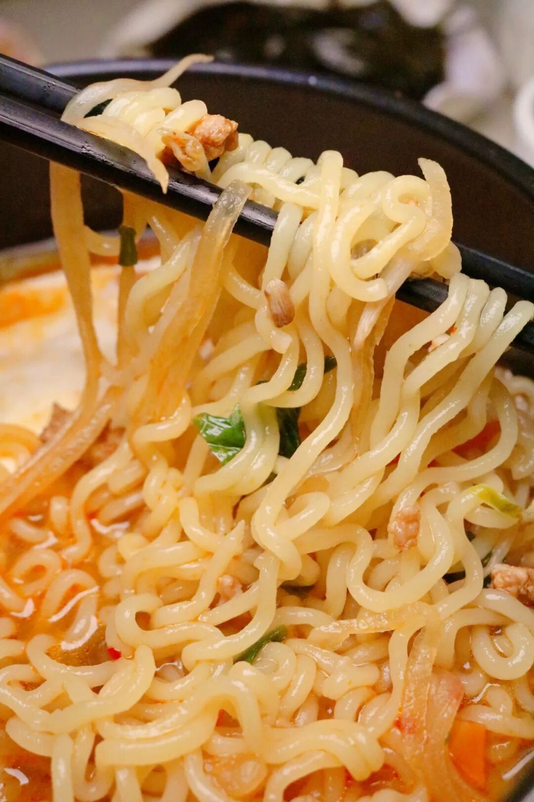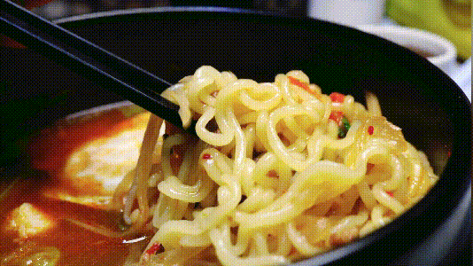 北北很喜欢辛拉面的汤底,辣中带着微酸,拉面吸饱了汤汁,吸溜一下唇齿生香,这种时候就顾不得矜持了!