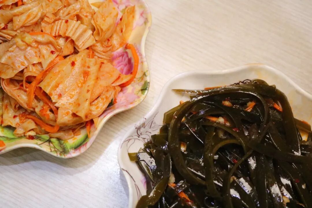 豆皮和海带是免费赠送的小菜,小菜微辣中带着点甜,很是开胃,记得再来一杯同样免费的大麦茶,好喝又解渴!