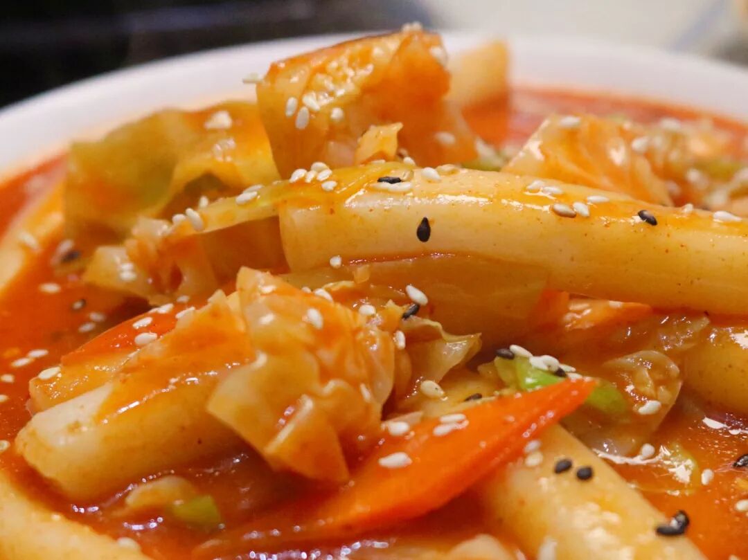 韩国料理标配炒年糕,软软糯糯的年糕很适合搭配韩式辣酱,再吃一份也不会腻。