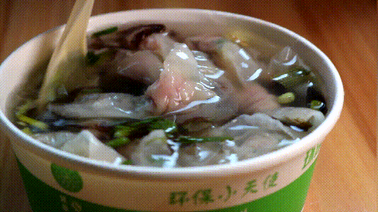 与食堂手抖的阿姨不一样,叔叔每次给的肉片都非常足,以至于汤都溢出来了。