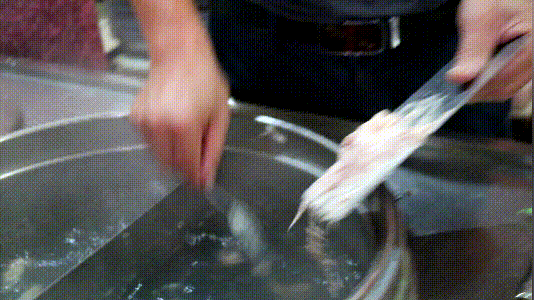 削肉泥、捞肉片、装盘、打包,这么多年,叔叔阿姨们早已练就了一身功夫,动作如行云流水一般。