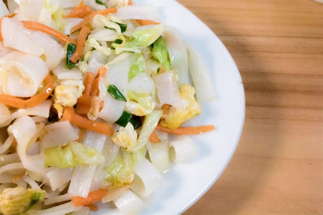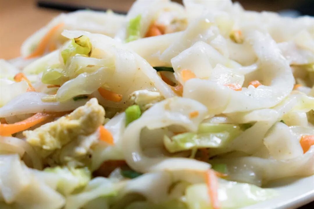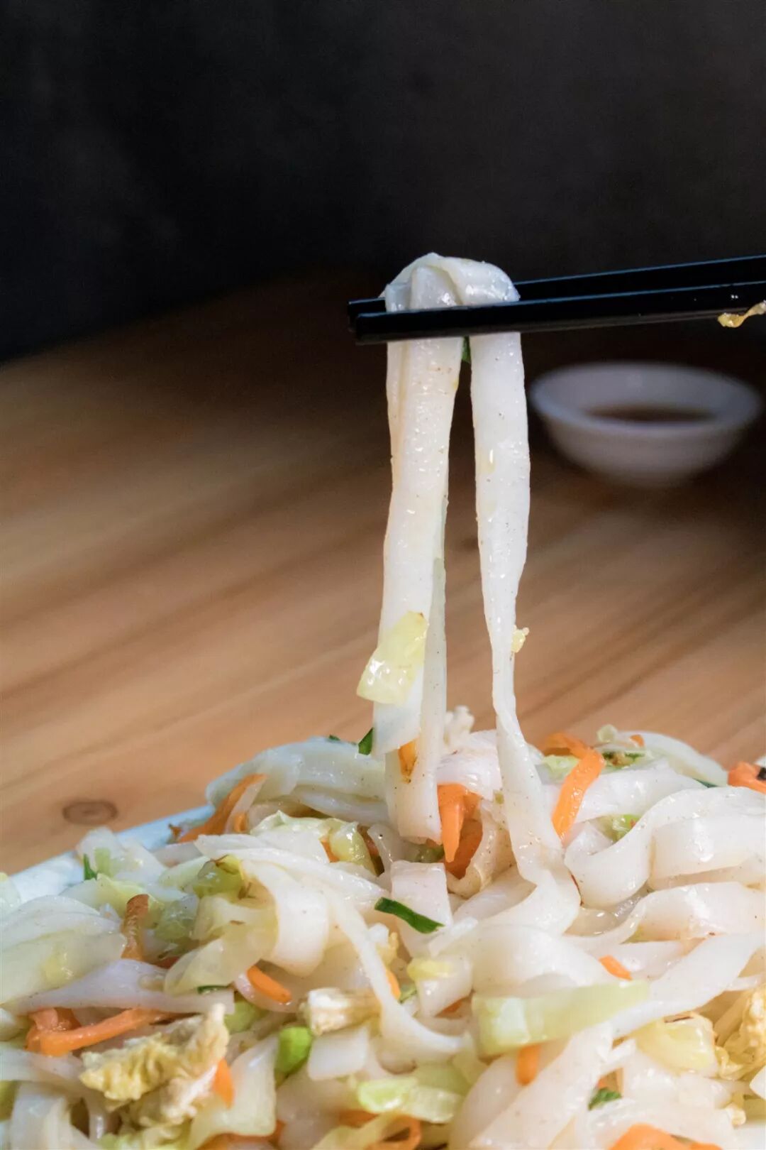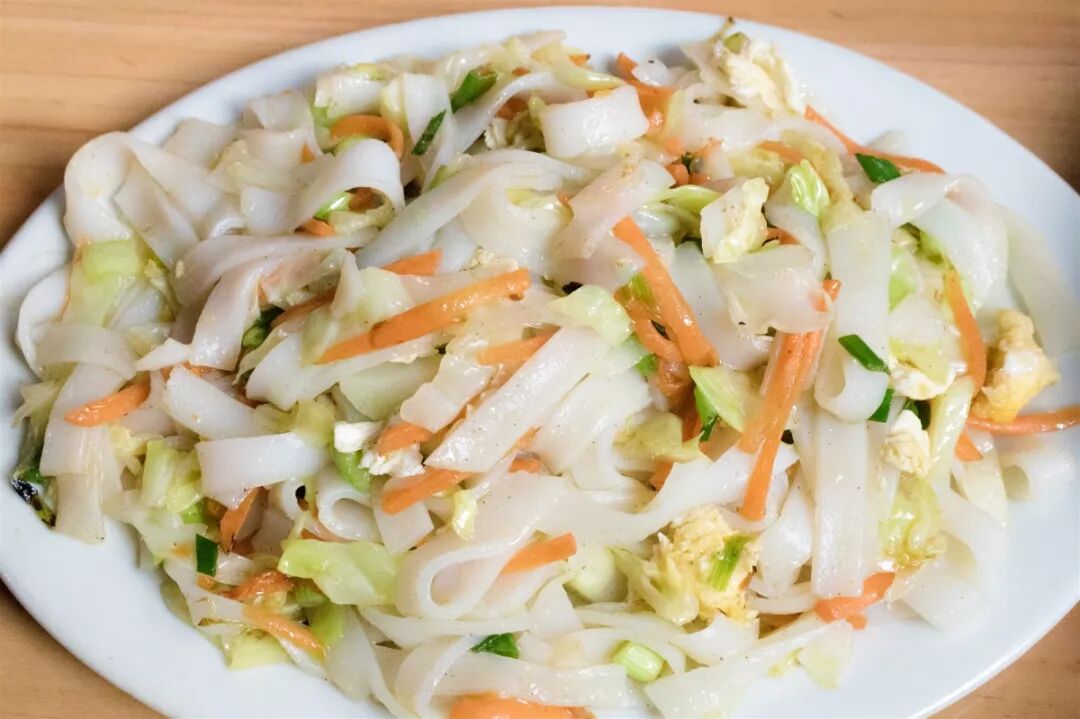 炒河粉都是现点现做,上桌时还冒着热气,里面加入了鸡蛋、胡萝卜丝、包菜、香葱,看上去很解馋。