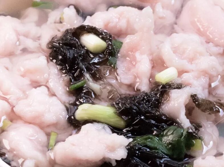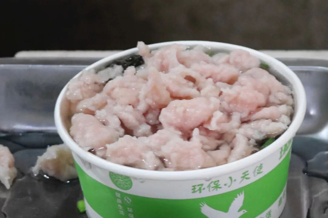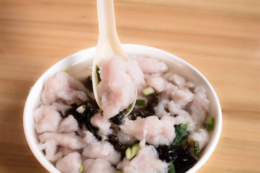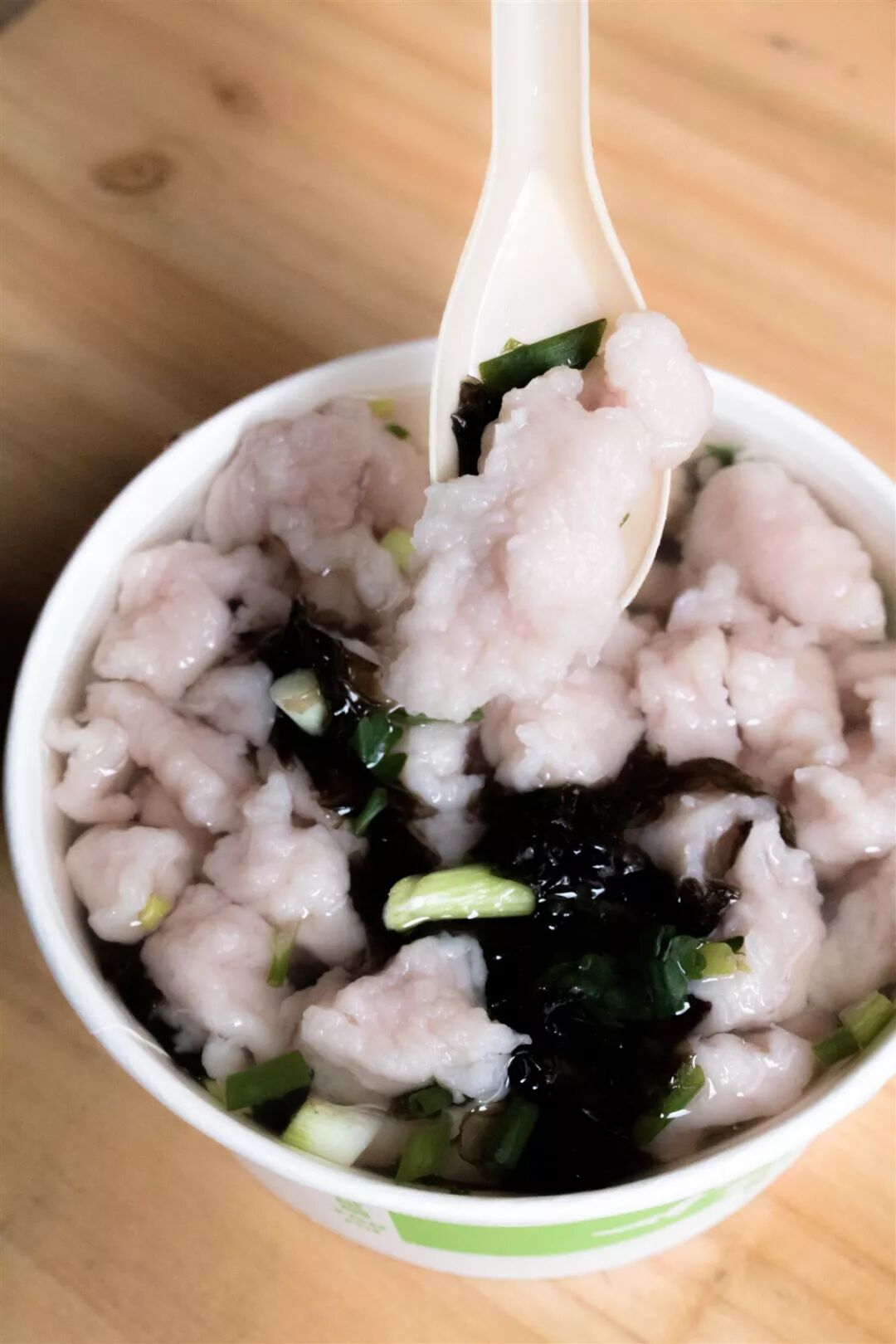 肉片洁白嫩滑,片片饱满紧实,吃起来软韧有嚼劲,一口咬下去都是猪肉的鲜美。
