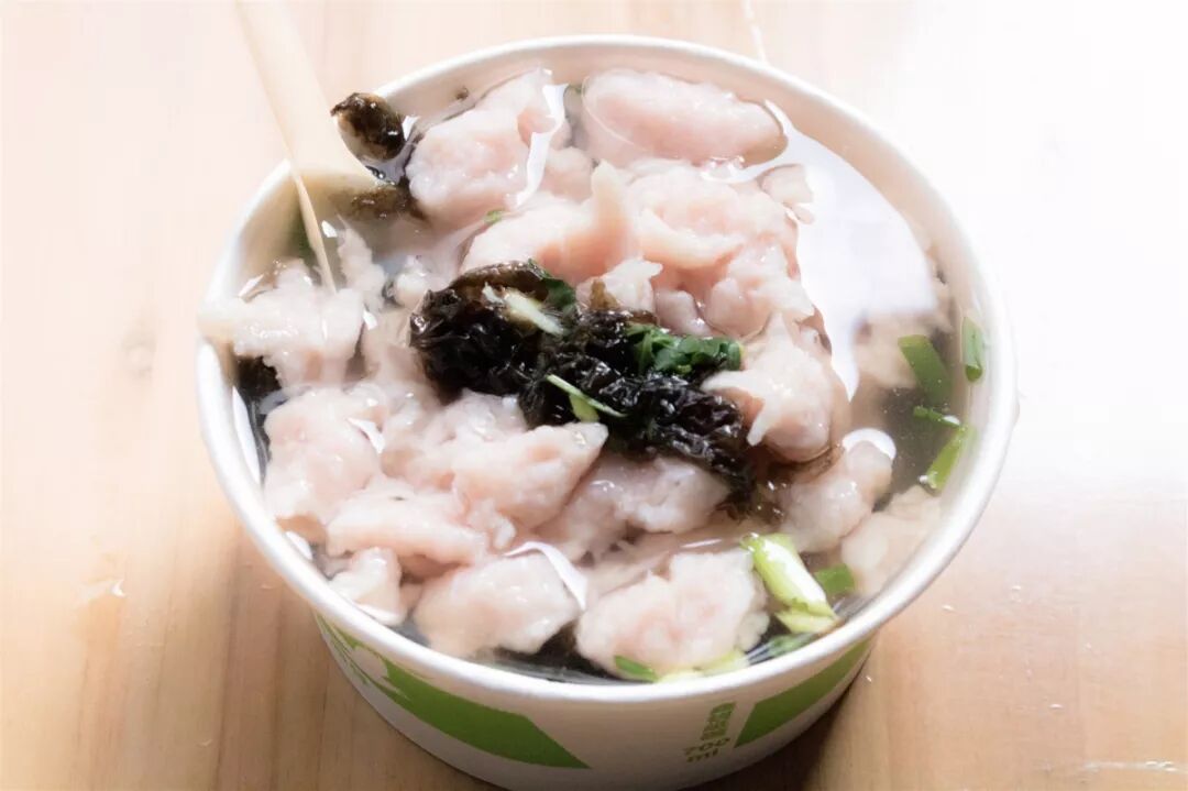肉馅看起来粉粉嫩嫩,口感润滑爽口,吃完后唇齿间还遗留着肉燕的鲜香。