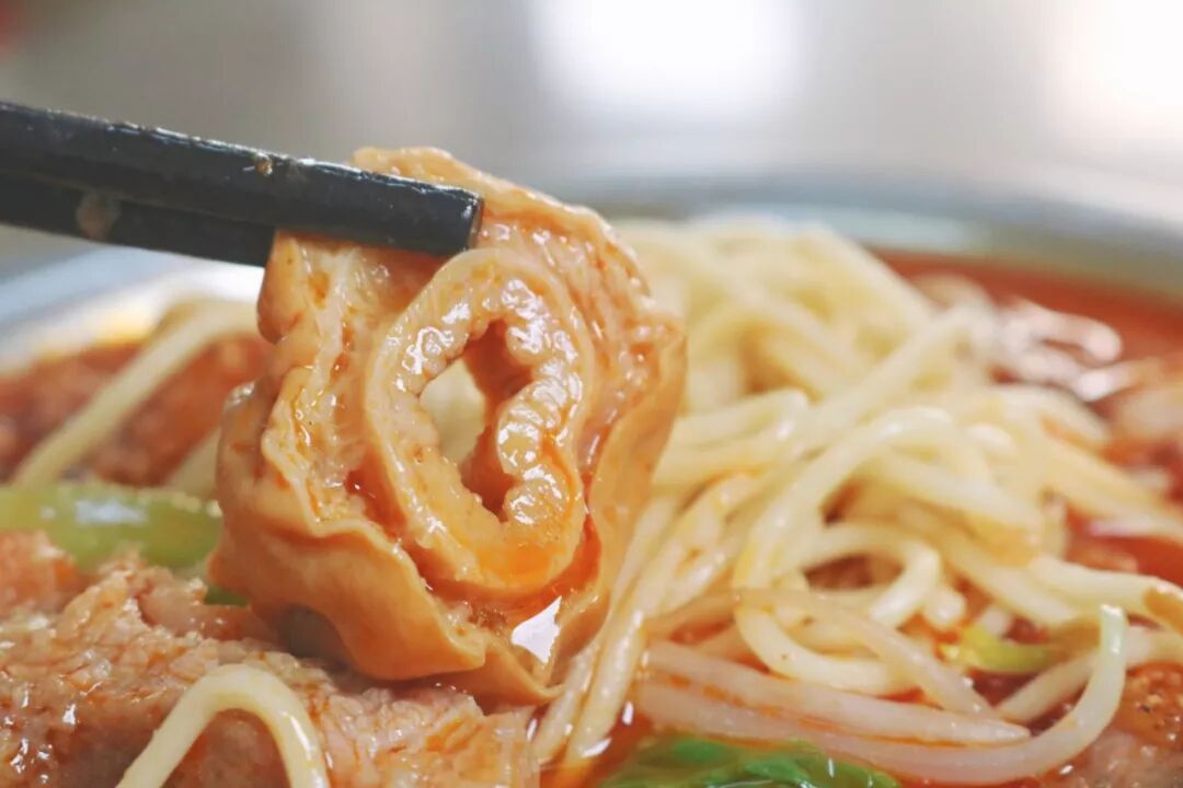 再加一份卤大肠是闽南人吃沙嗲面的标配,微辣的汤头味道醇厚,浮着淡淡一层红油,还没吃先被诱惑了~