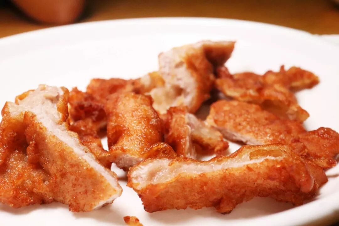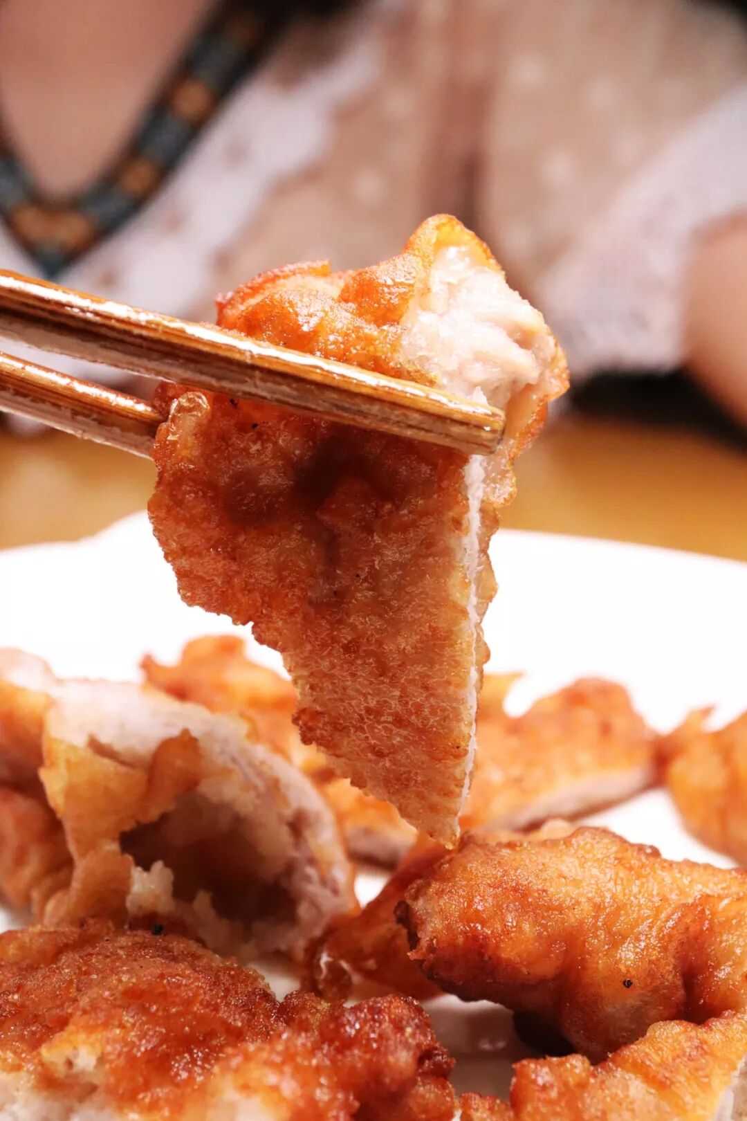 醋肉是一整片的,一般店家会帮忙切成小块,比较方便食用。咬一口,外脆里嫩,外加一点点酸,口齿留香,百吃不腻。