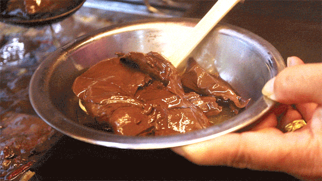 一块新鲜还在冒热气的猪血入口,猪血的鲜香和溜滑劲弹的口感夹杂其中,直接冲击着北北的胃。