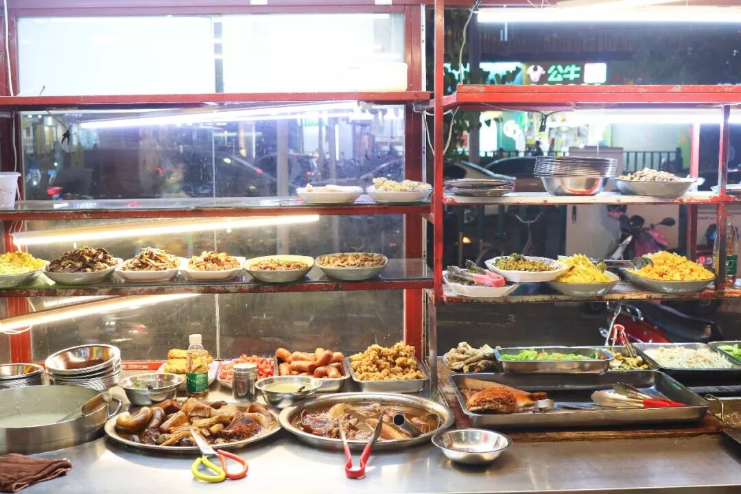 人多的时候,就自己拿着打包盒,把需要的菜品夹好,打包,付钱一系列动作自己完成后,跟老板打声招呼就直接骑车走。