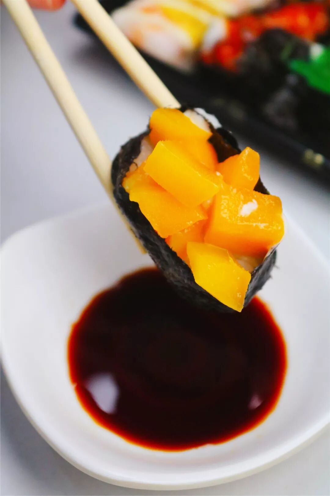 作为一个芒果迷妹,对这款芒果寿司简直没有抵抗力,满满的果肉都要溢出来了~