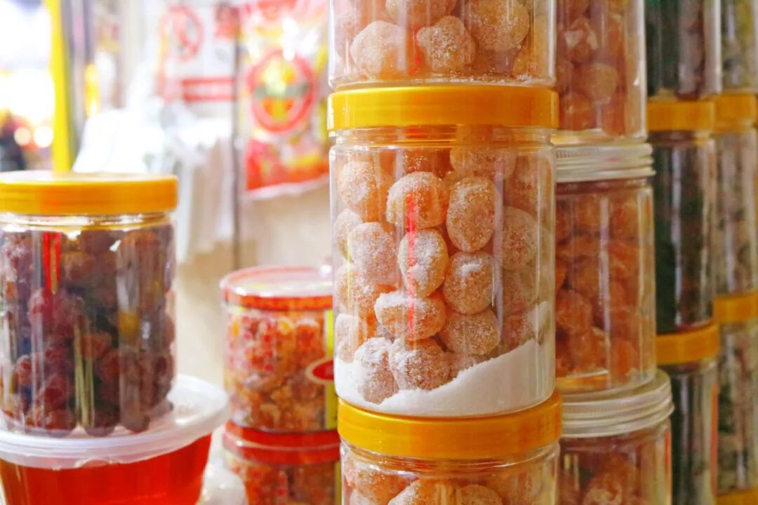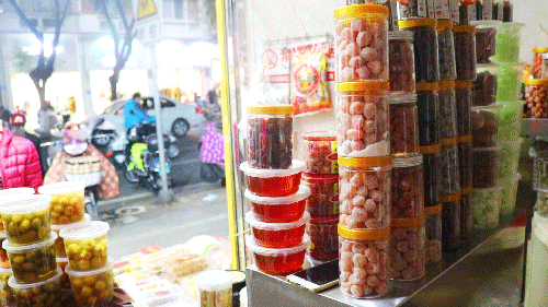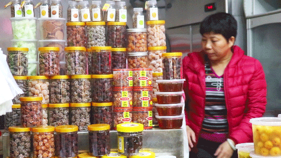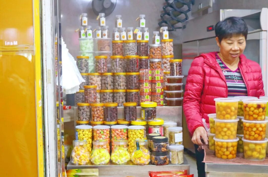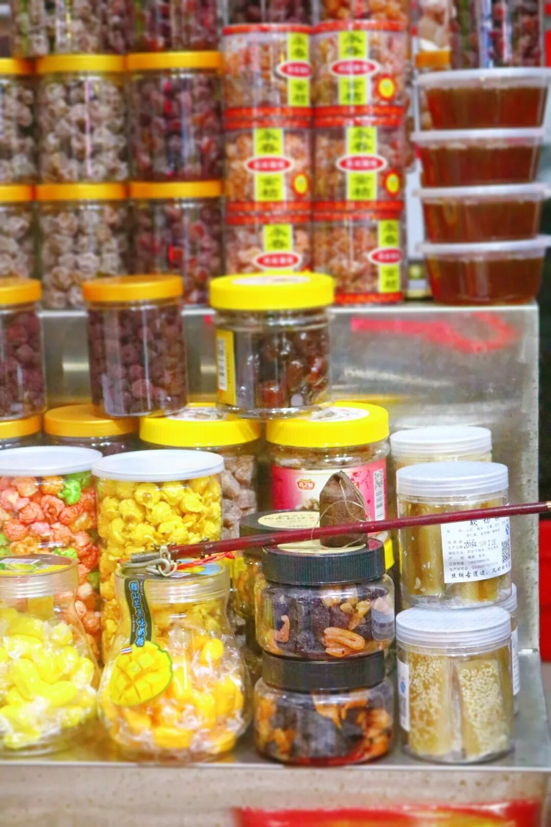 阿姨的小店也兼卖话梅、金桔糖、橄榄、云片糕、绿豆糕等数十种各地特产,像一个小型杂货店。