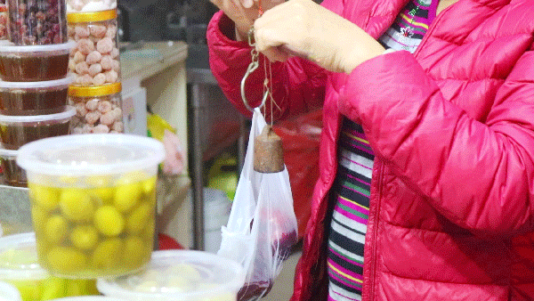 阿姨的小铺主卖腌桃腌李,我们去的时候正好错过桃子期的最后一天,只剩下腌李。