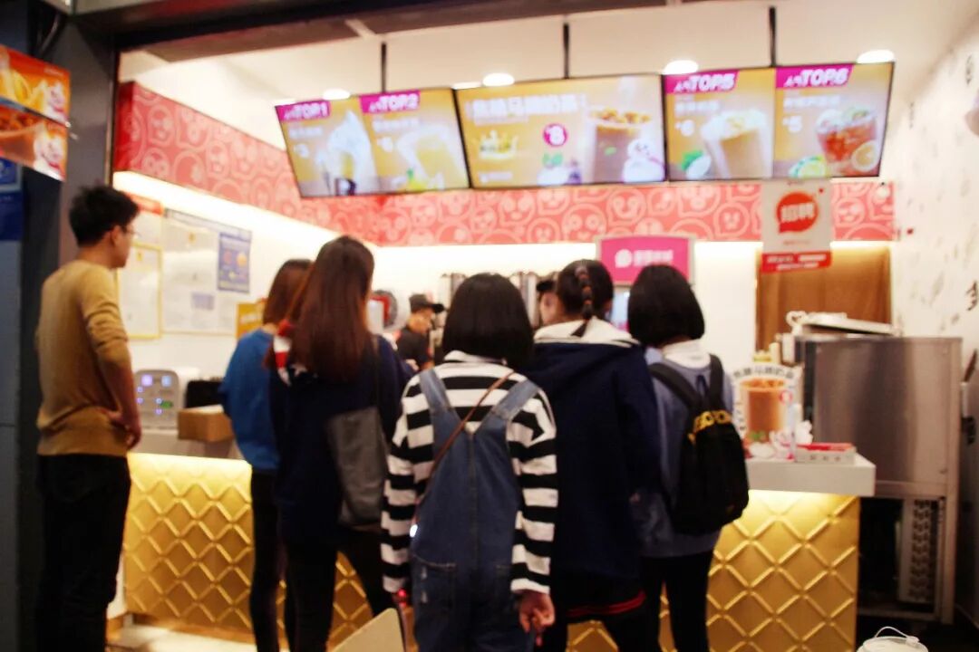 和许多快销饮品店一样,蜜雪冰城的店铺不大,人气却很旺。店里亮堂而干净,门口摆放着一张桌子和椅子可供休息。