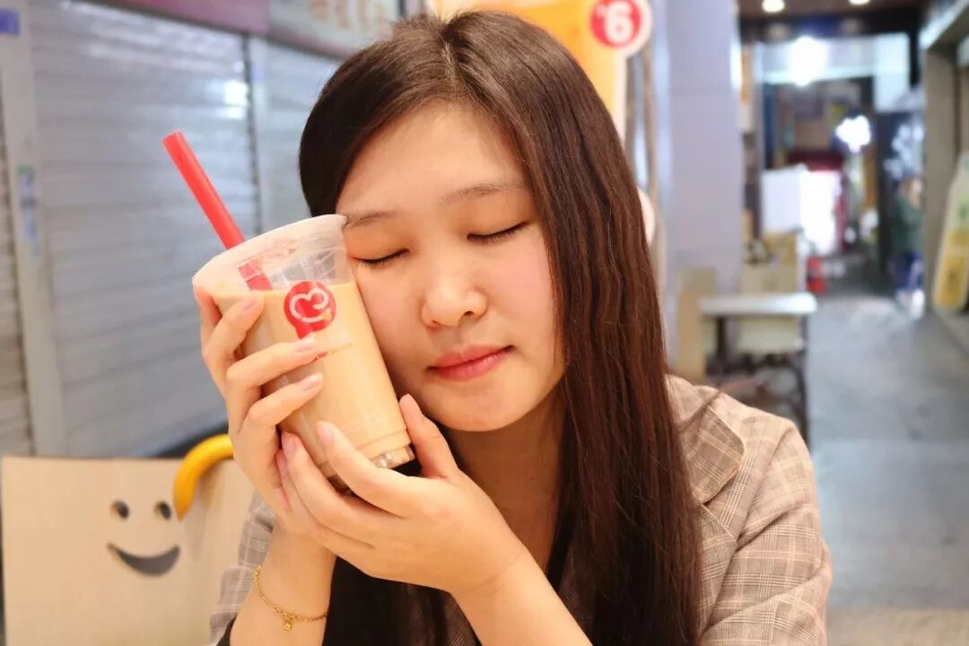 奶茶入口是焦糖的香气,吸一口可以吃到马蹄果脆脆的口感,冬天的时候来一杯温度正好的焦糖马蹄,暖暖的,很贴脸~