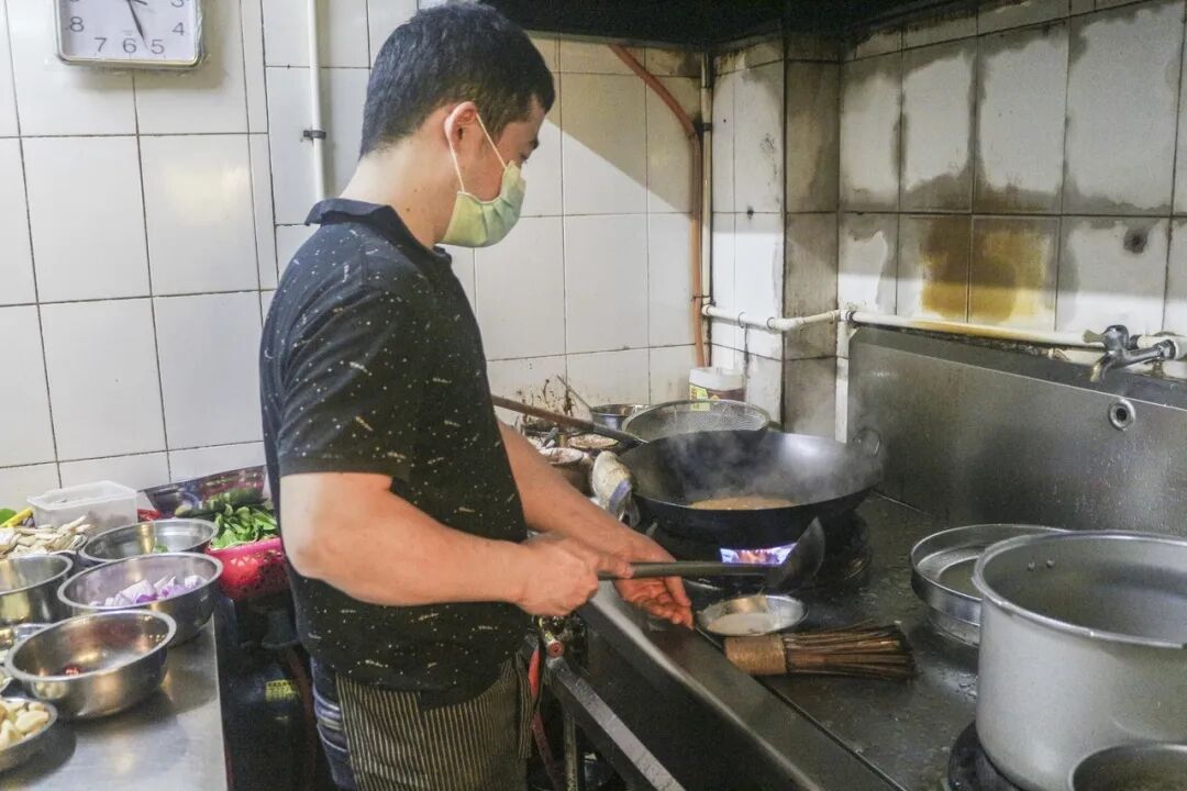 有着十几年厨艺的舒叔,颠勺、翻锅,对他来说如同吃饭夹菜一般简单。他家小炒的味道几乎跟酒店的如出一辙。