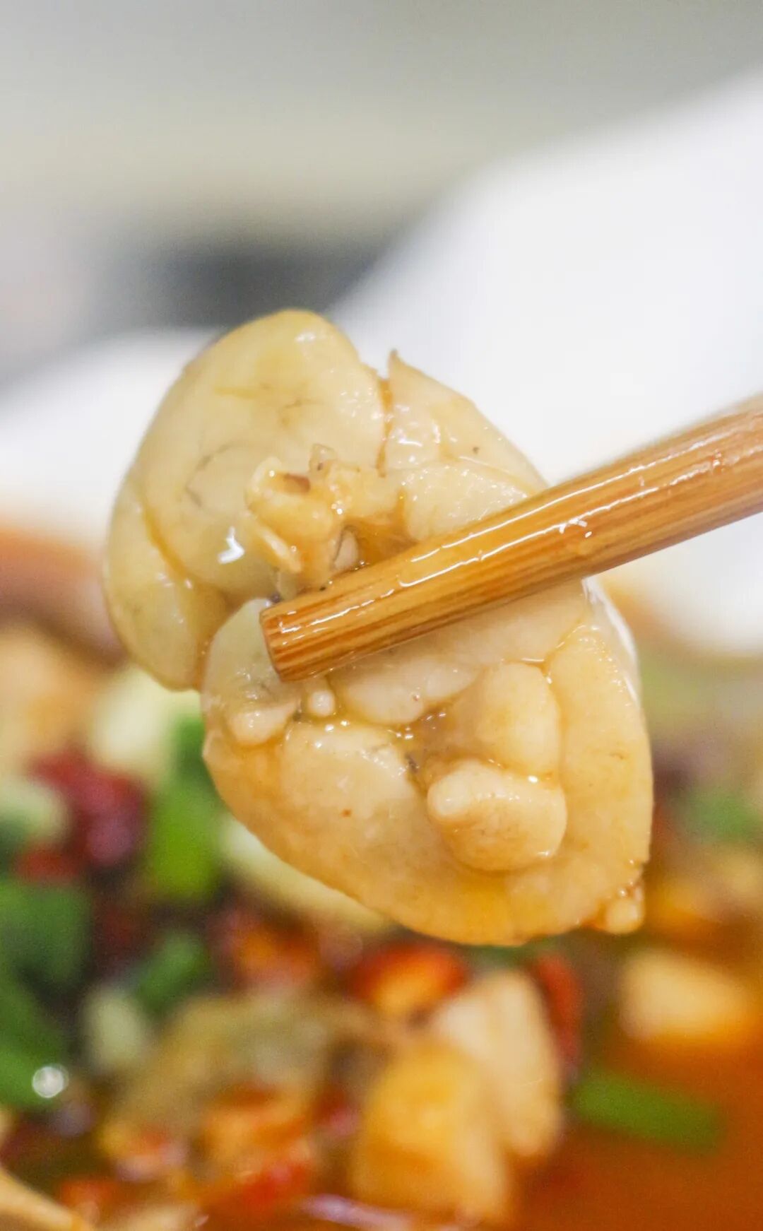 田鸡入口鲜嫩,肉质饱满,每一块都还挂着香辣的汤汁,让人越吃越上瘾!