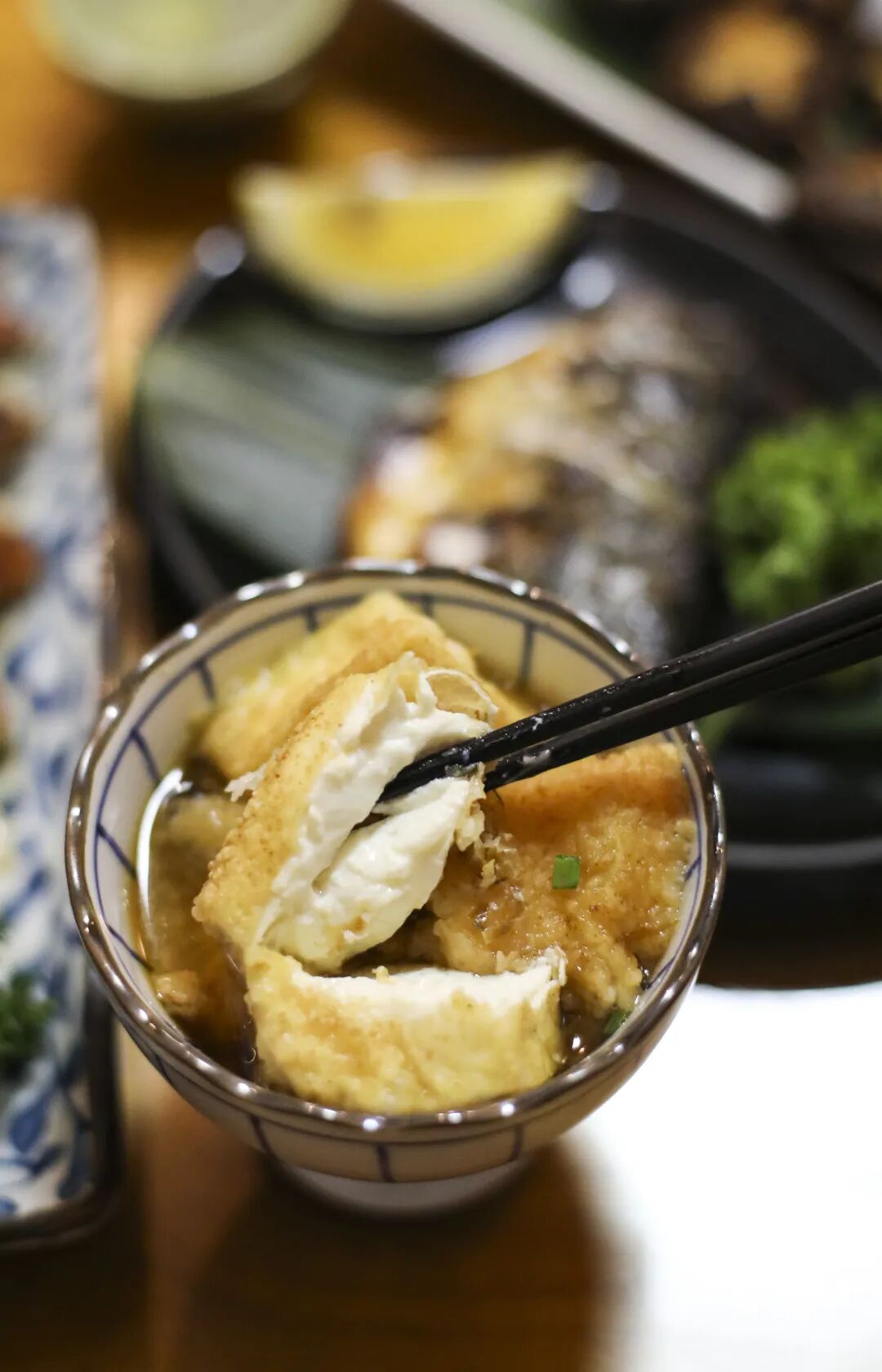 和风豆腐是颜值很高的一款菜品了。放在小小的葵形盏里,这道家常式的豆腐,也有了淑女一般的气质。