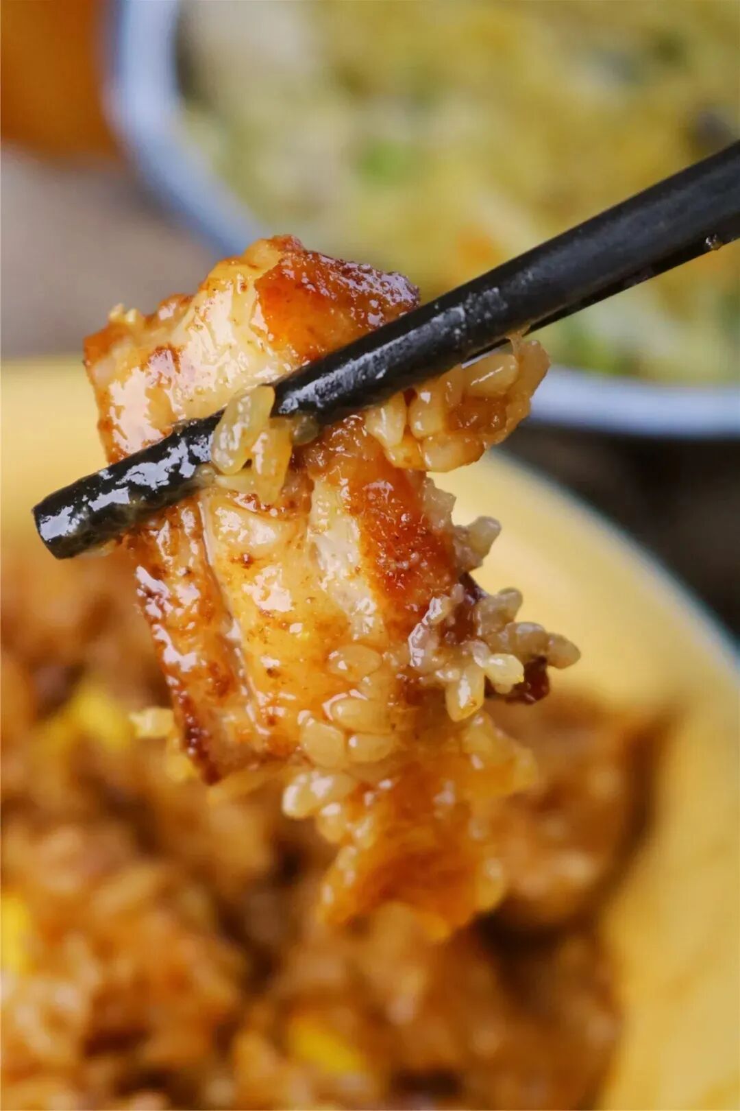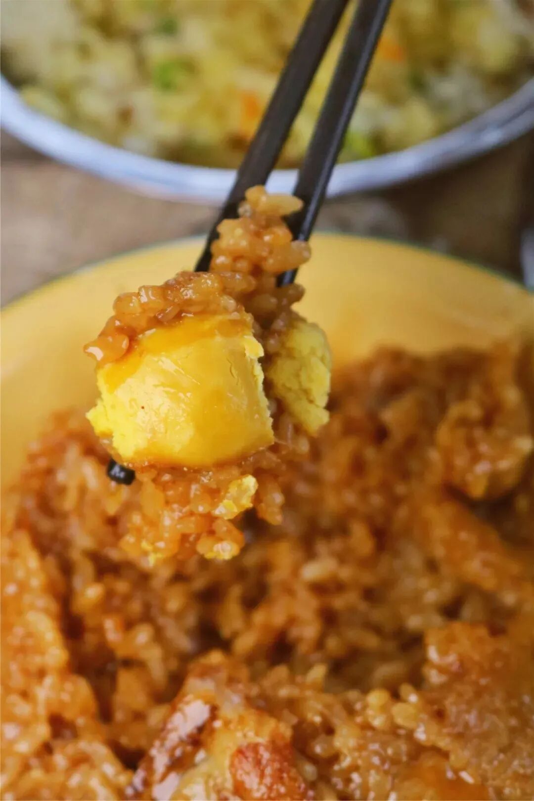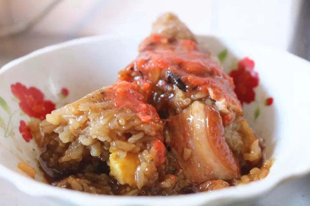 糯米软糯咸香,包裹着香菇、鸡蛋、虾仁等,三层肉绵而不腻,咬一口嘴巴立刻被塞得满满当当。