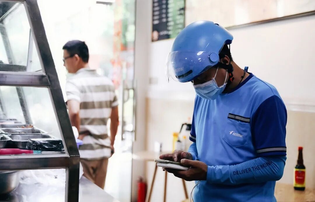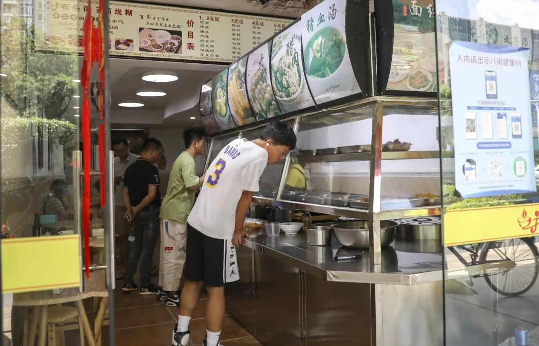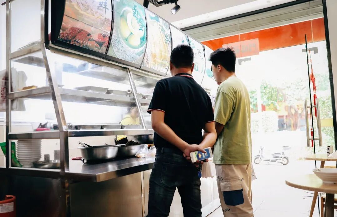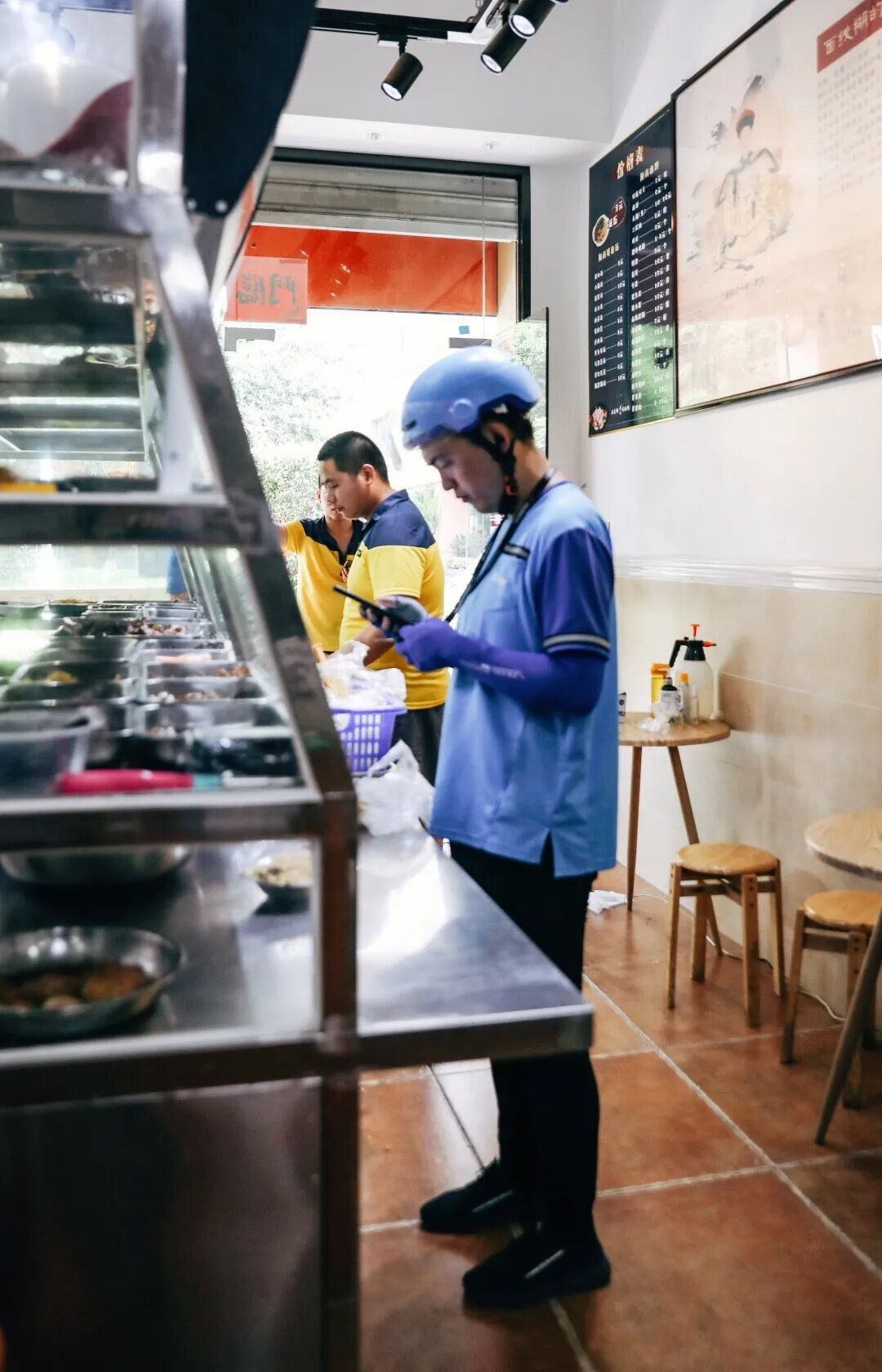 一接近饭点,店里的外卖小哥跑得比客人还勤。操作台上的手机频频响起“您有一个新订单…”的交易提醒。