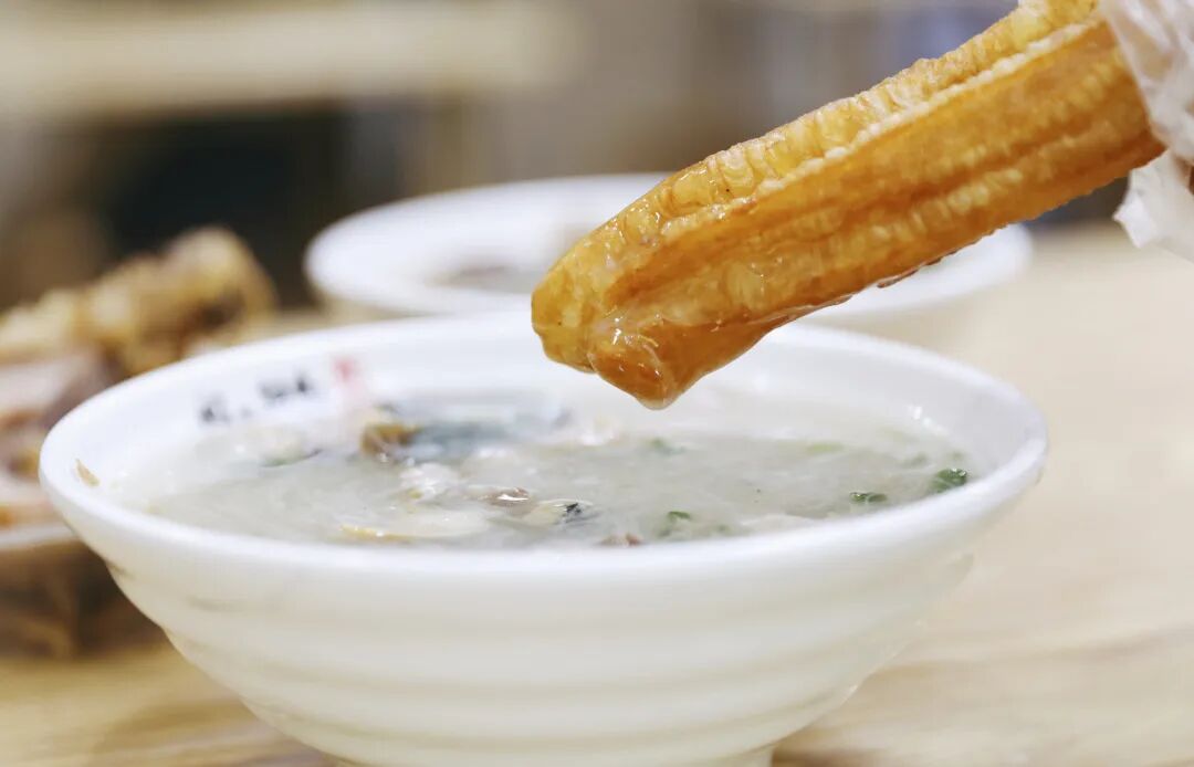 油条就搁在档口前,想吃拿个袋子套上,完全自给自足。