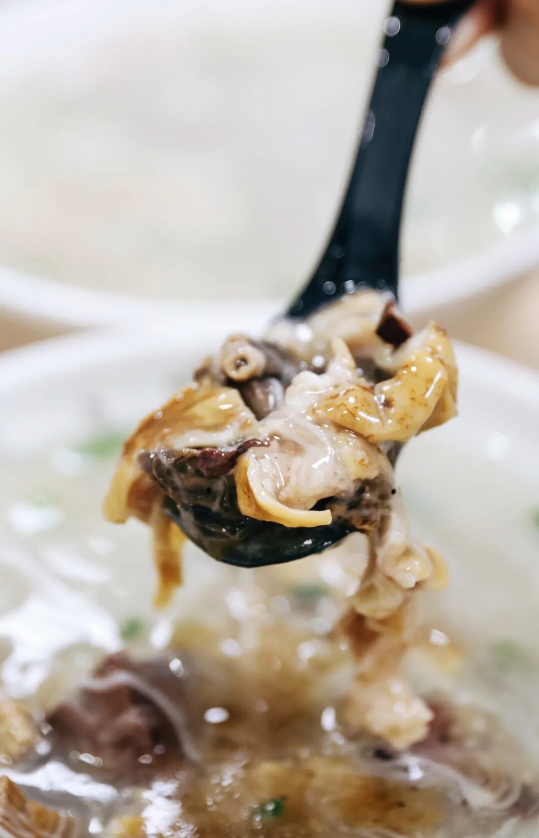 鸭皮滑腻而有弹性,咬开后是皮蛋特有的风味,带着柔韧破开的感觉,和面线糊组cp简直不要太完美~