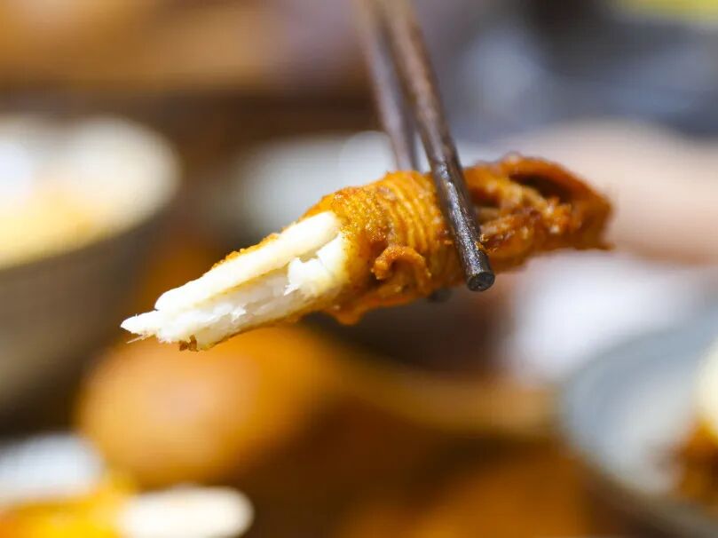 火候把握的刚刚好,筷子轻轻一夹就可以夹断,酥酥脆脆,肉质鲜嫩,吃不到一点腥味。