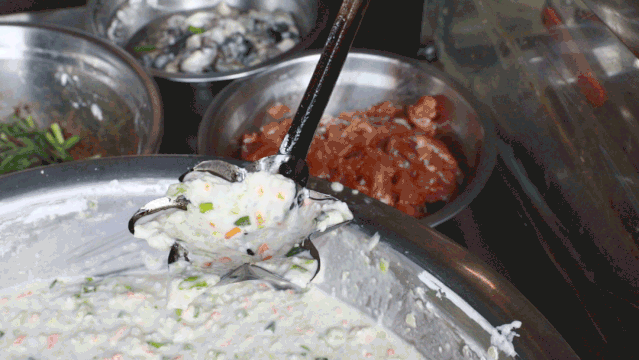 太爱他们家的浮粿了。新鲜的海蛎、美味的瘦肉、碧绿的韭菜、脆爽的胡萝卜,以及惠安本土的地瓜粉,山海汇聚造就这般美味的相逢。