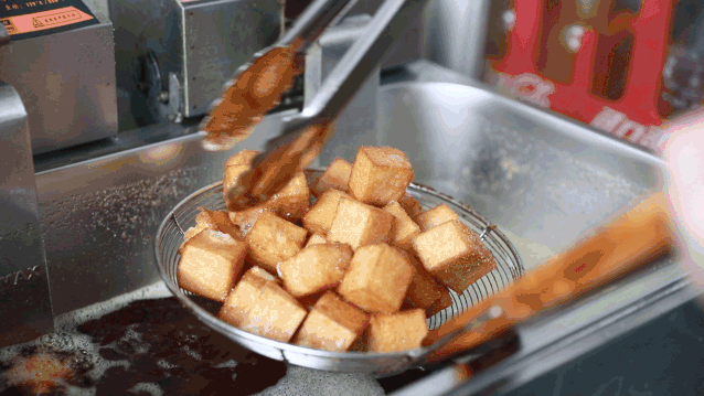 油锅沸腾,浮粿、菜粿、醋肉从不同的电炸炉一一捞起,香气溢出,十分勾人。