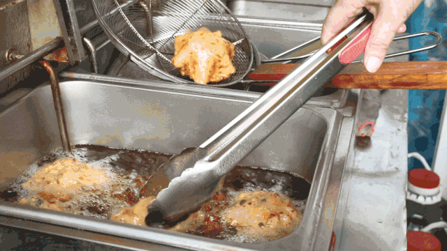 开放式的炸物台干净清晰:电炸炉还是一副簇新的模样,油锅里的油清澈透亮;展示的玻璃柜能清楚看到炸物的颜色……有别于传统的炸物小摊,这里干净得让人很放心。
