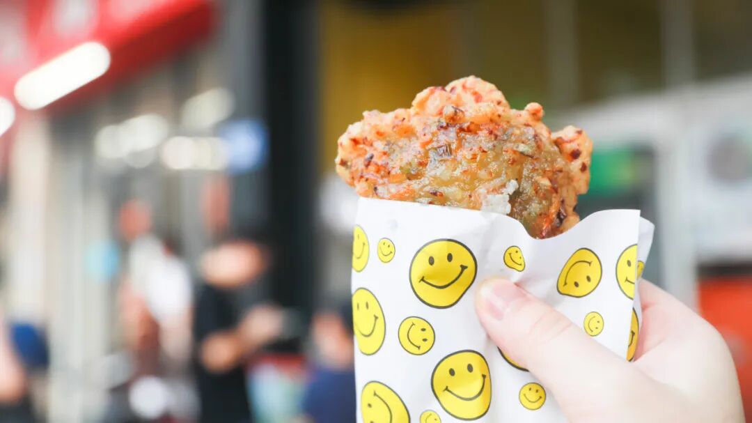夫妻俩一开始只卖炸物。从对面的158号搬到现在的店面,两人决定把老家的特产地瓜粉团也做起来。