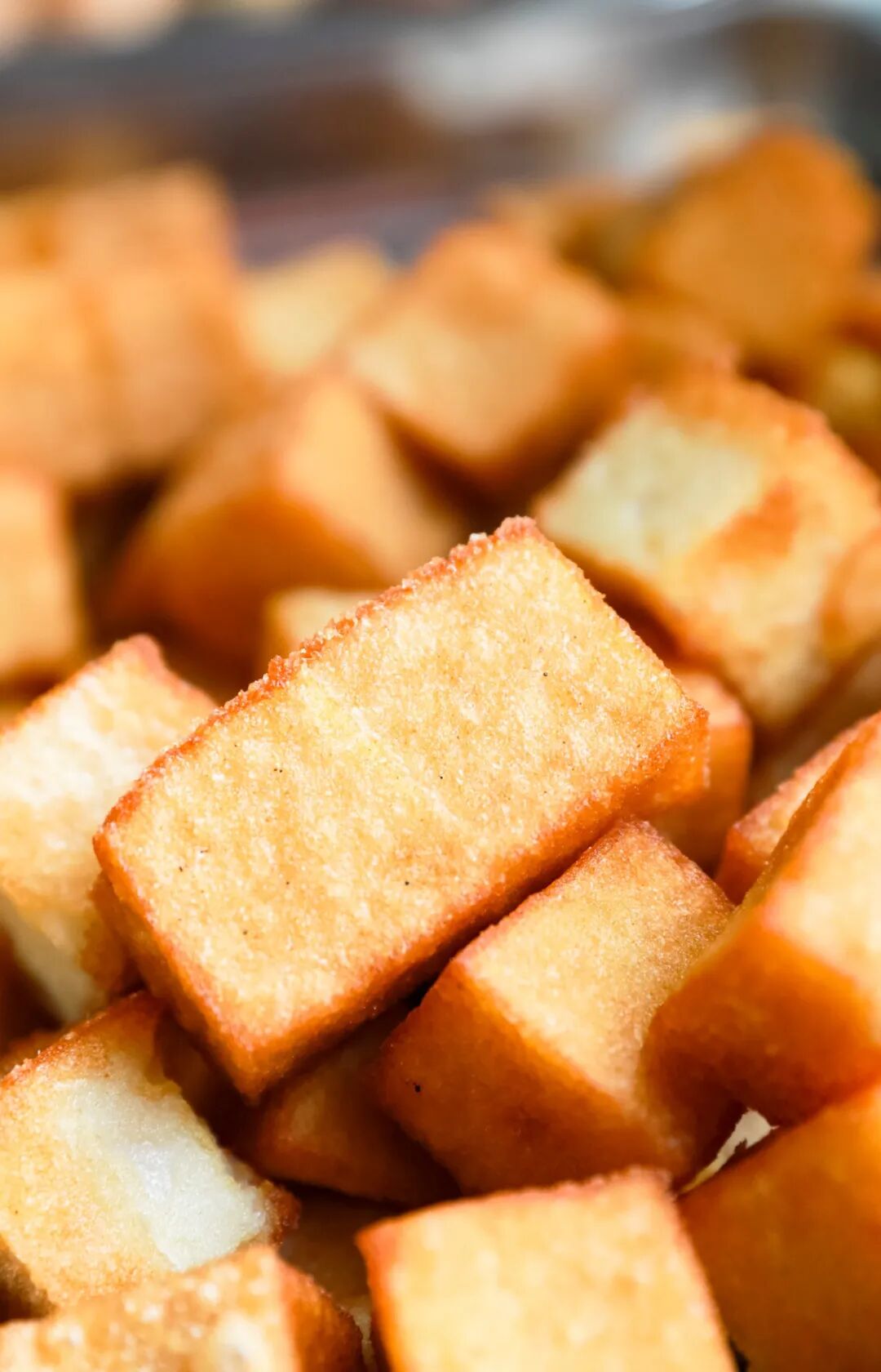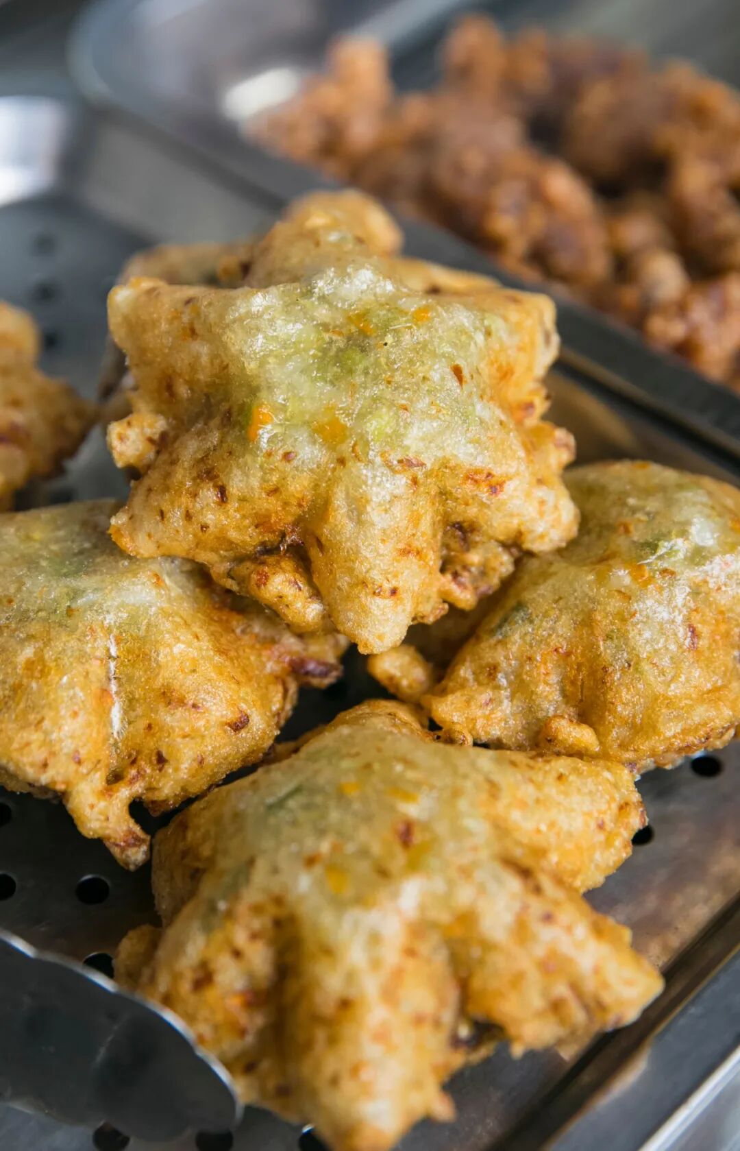 炸好的浮粿是漂亮的六角星形,外皮酥脆,内含地瓜粉特有的嚼劲,吃起来Q弹不黏牙。