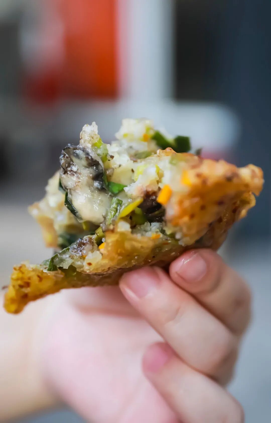 往边角咬一口,内里是鲜嫩的海蛎和香喷喷的瘦肉,唇齿间带有韭菜的香气,一个下肚根本不够满足~