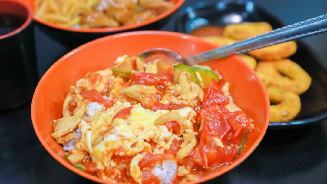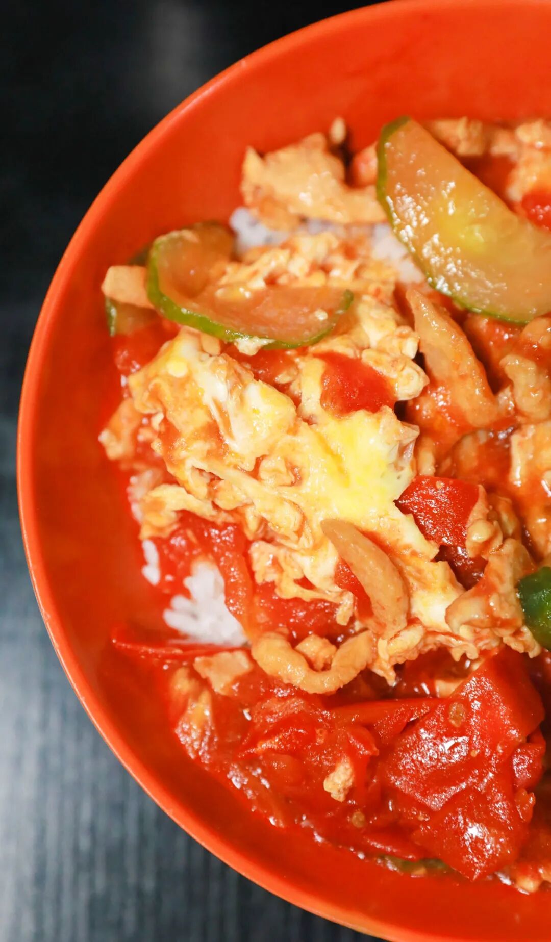 盖饭中,最常见、最受欢迎的应该就是『西红柿滑蛋饭』了吧,一份11元的价格真的是亲民又美味。