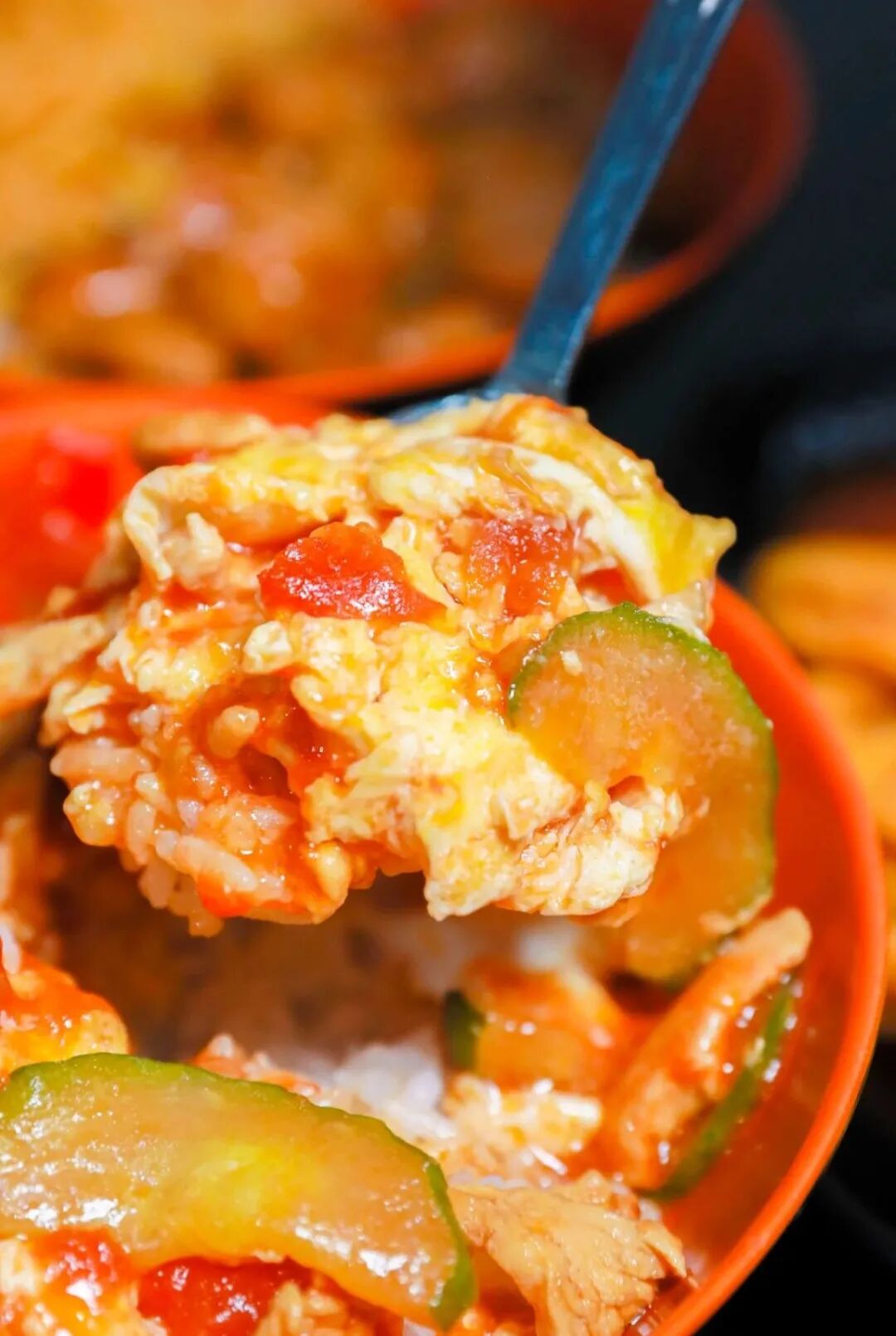 散打的鸡蛋,稍微有些过熟了,但这也不影响它的整体味道,搭配着酸酸甜甜的西红柿,舀上一口真的满足...