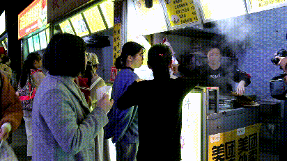 阿姨手脚超超超麻利,一边招呼一边下锅,手速还快到模糊~