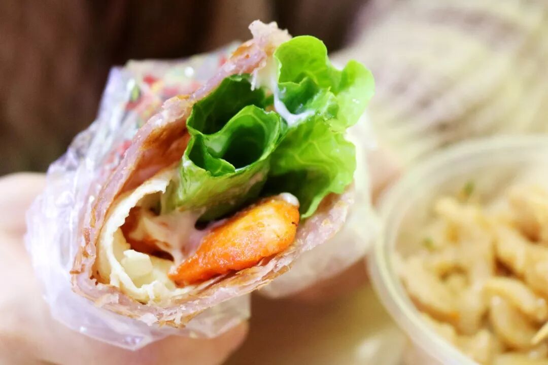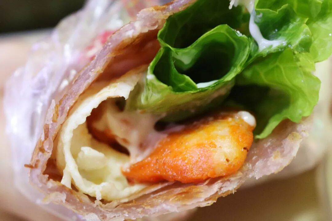 中间的料根据喜好任选,什么鸡柳牛肉培根火腿腊肠、芝士海草海苔肉松都不在话下,甚至辣条都有!