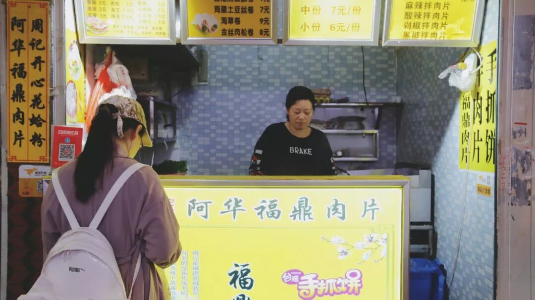 阿华福鼎肉片的阿姨每天都要对着来来往往的学生喊上几句,还有脸熟的同学会笑嘻嘻地同她打招呼。