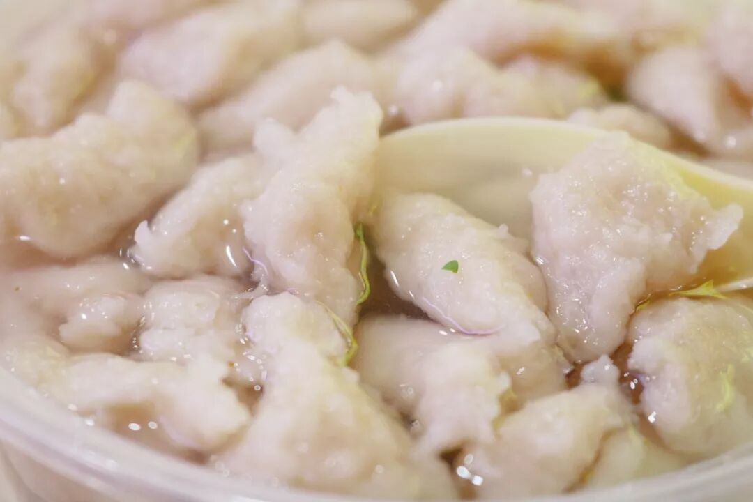 肉片是诱人的嫩白色,脆而爽口,新鲜又紧实,不像别家总是软烂软烂的。