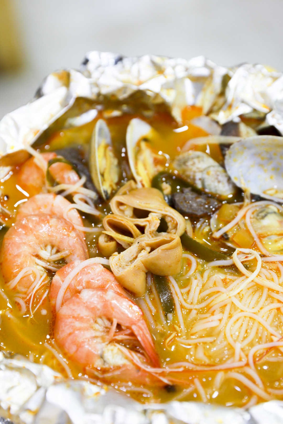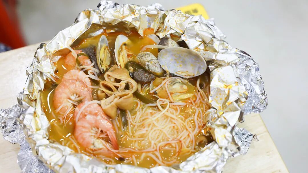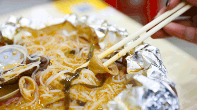 排到位置坐下,没一会花甲粉便端了上来。一上桌就闻到了诱人的香气,迫不及待揭开锡纸,满满的一大碗,让人充满期待又惊喜。