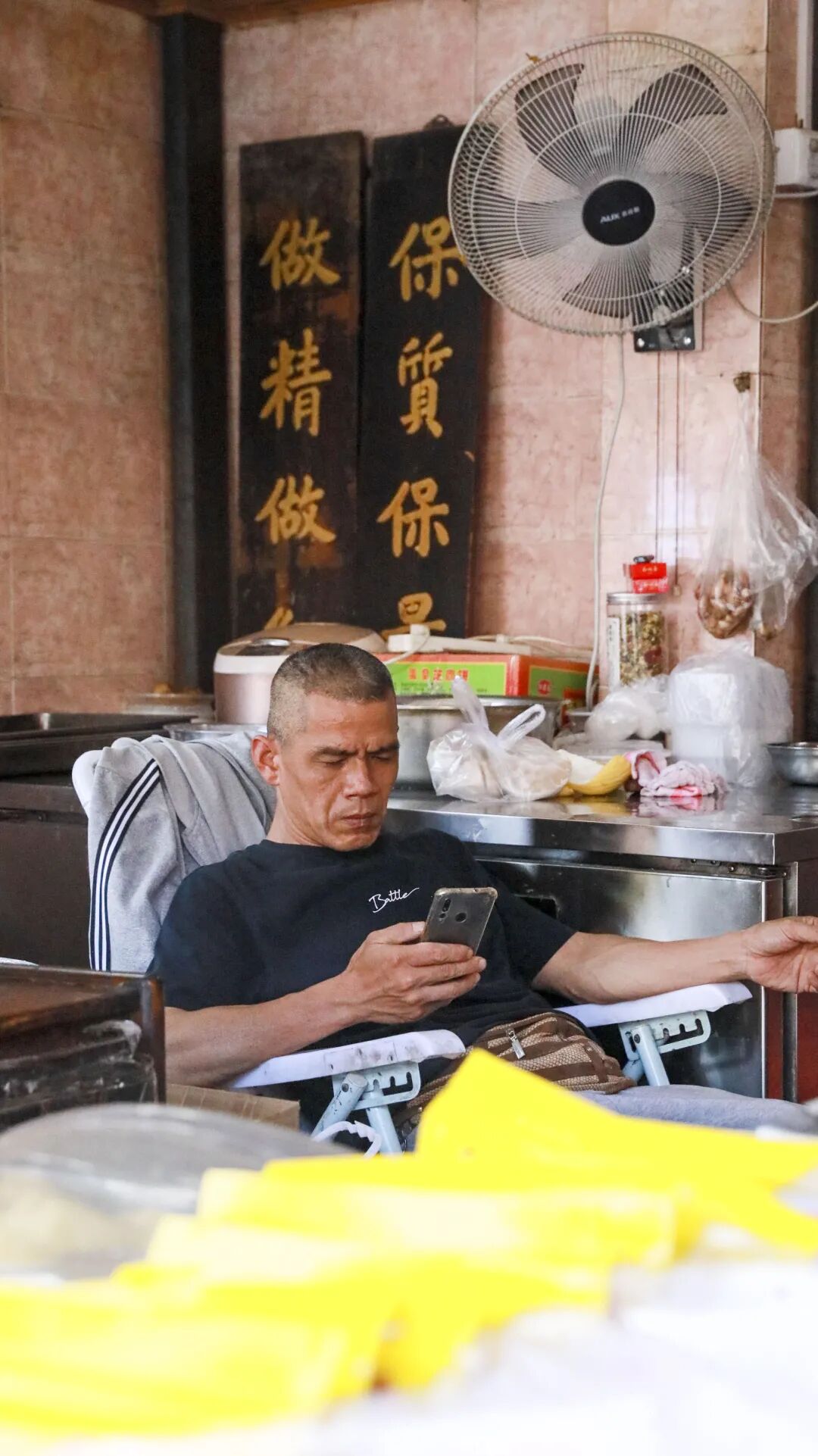 陈叔是「小时候味道」这家店的主掌人,今年四十有余,从16岁接手这家店已有20多年;门口褪色的招牌、老式的装潢,随处都可见老店的年代感。