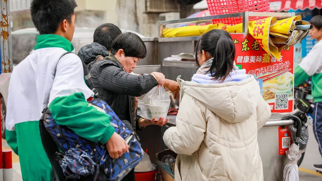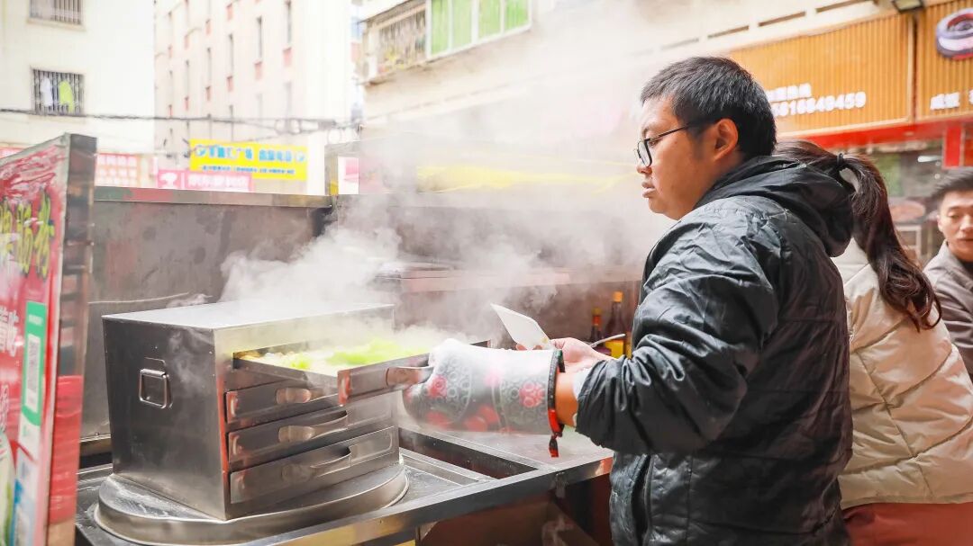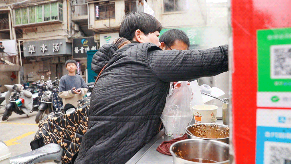“之前我们都在九一街往五中这条巷子上,没太固定位置,疫情后不让摆摊了,我们就把店固定在竹筒饭门口了,放学点才会摆到路边。”