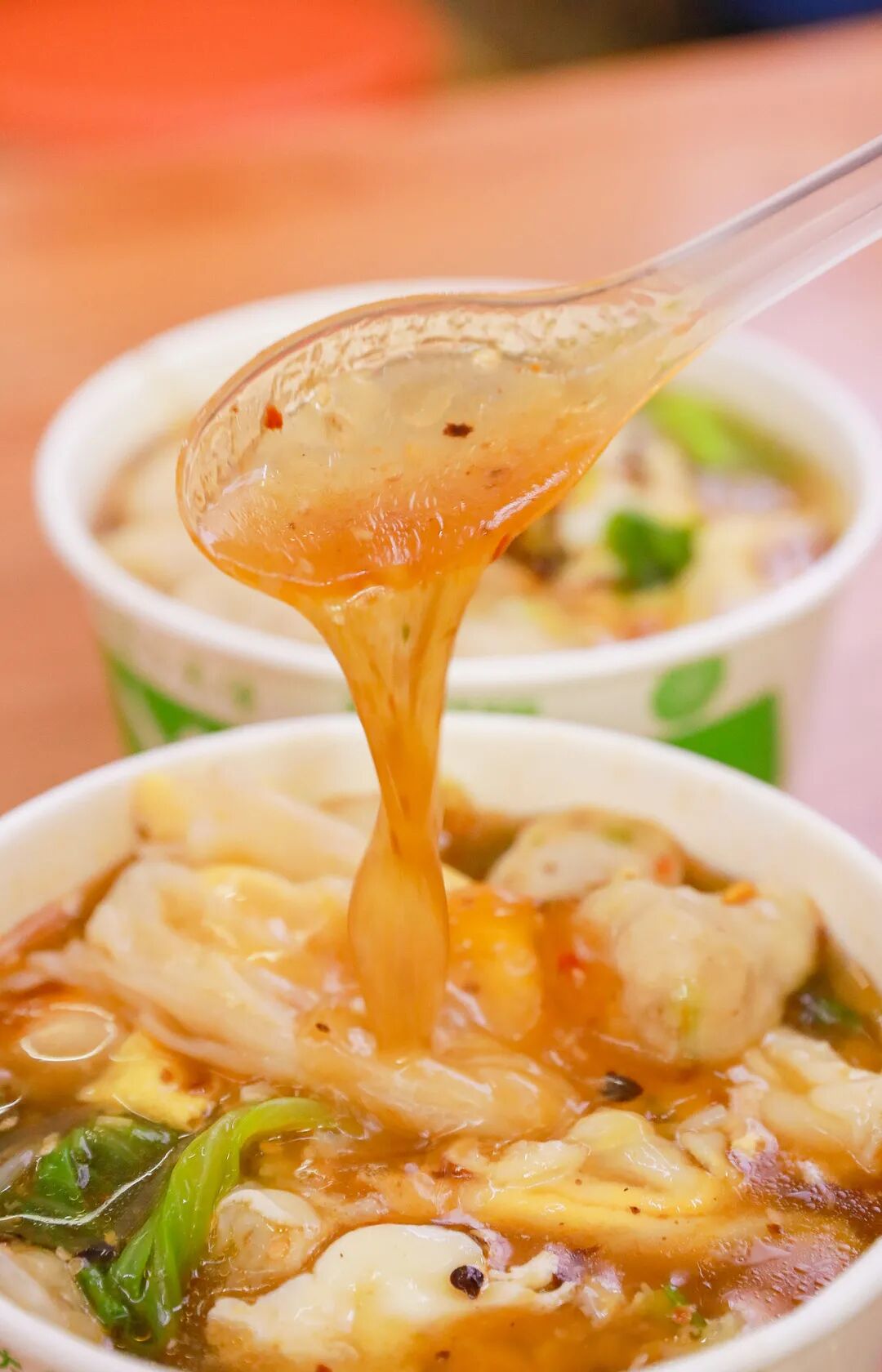 肠粉而已,又有什么不同呢?我们偷偷观察了会,发现吴哥家的肠粉,还真是别致,能加汤就算了,还能加好多料!醋肉、玉米粒、蟹肉棒?这做法还是第一次见!