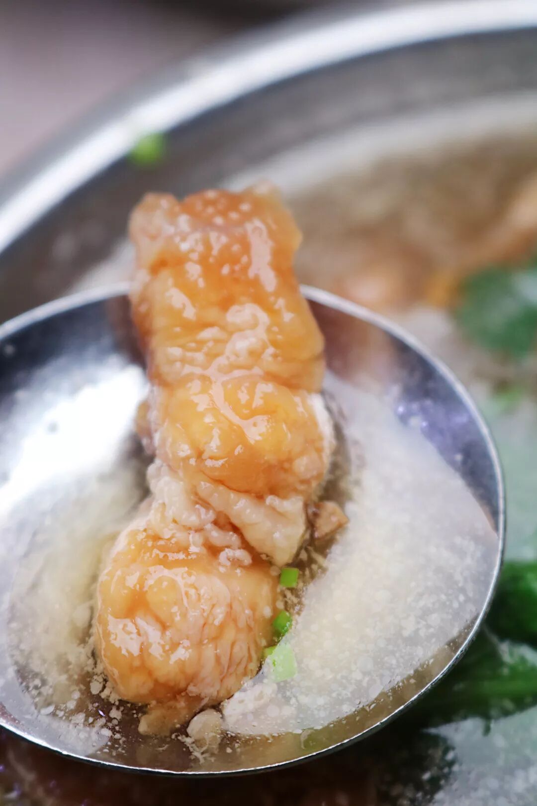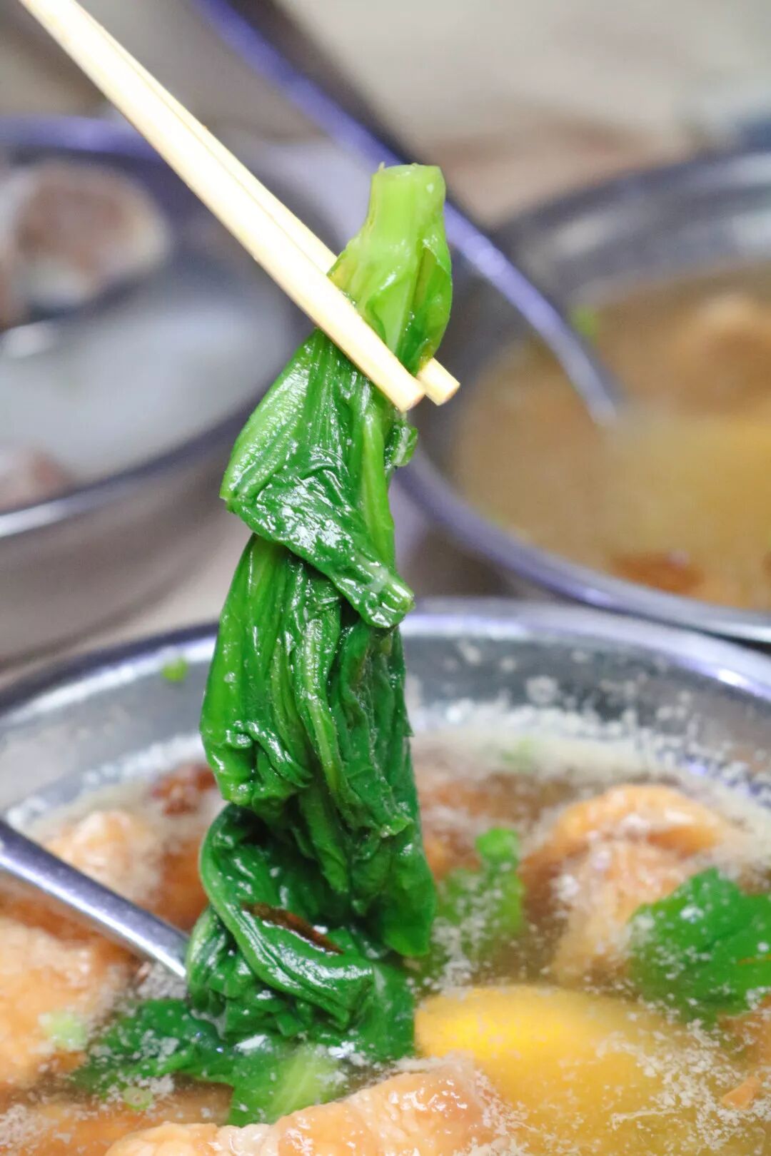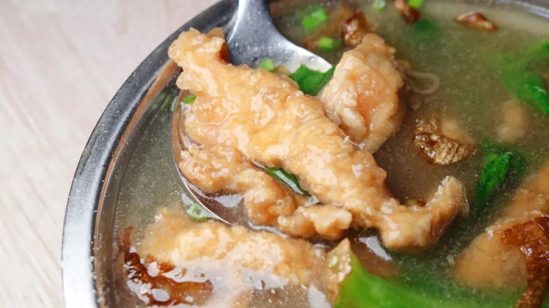 肉羹中加了茼蒿菜,很好地中和了纯肉食带来的腻味,一口气一碗不在话下~