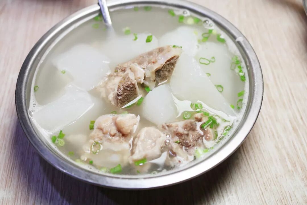 汤头很是清爽,排骨酥烂而不散,萝卜完全煮透,再撒上葱花就是家里熟悉的味道。