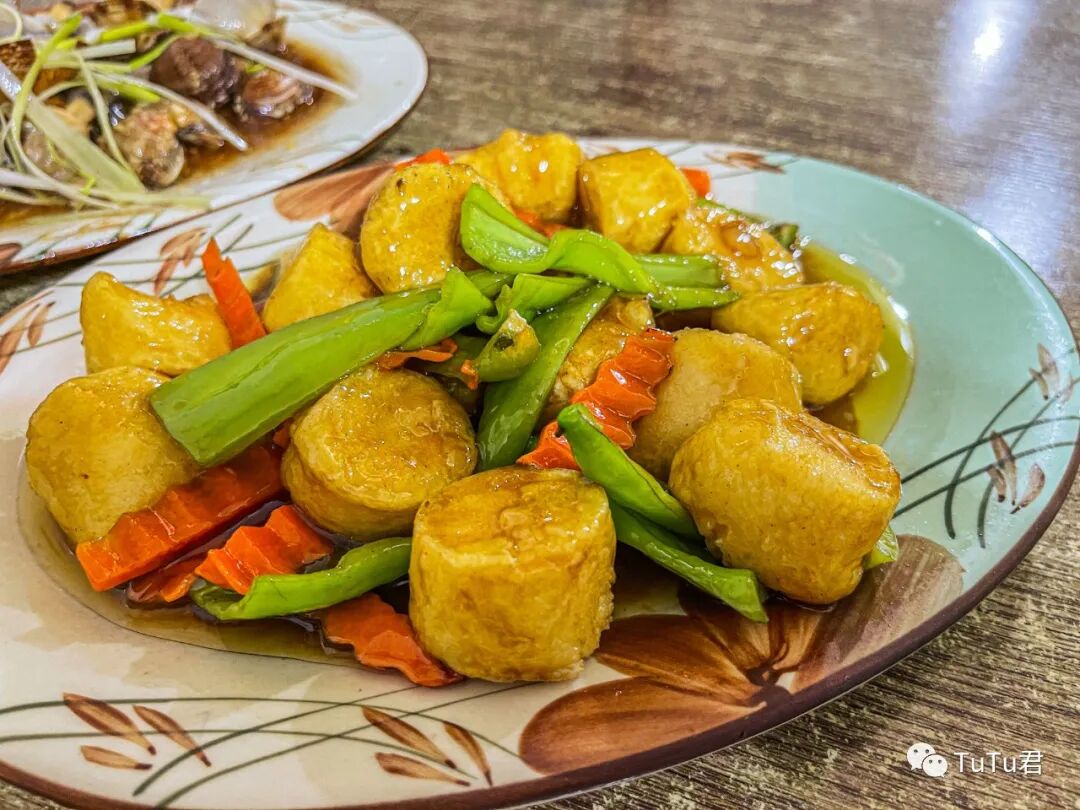 【红烧日本豆腐】火候恰到好处,表皮微酥,内里软嫩,咬下去口感优秀,而且咸淡适宜,下饭菜标配。(18元一份,没啥缺点的一道菜,这价格也是闭着眼随便点)