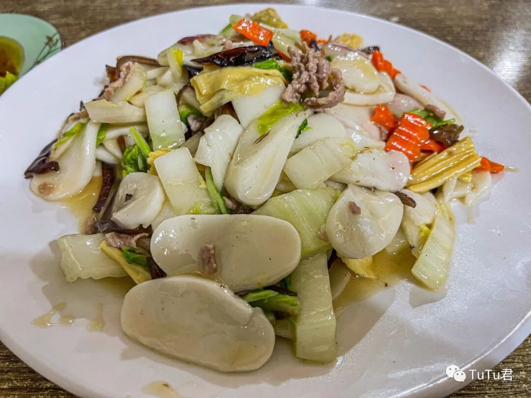 【炒白果】分量十足的一盘,这次用来当主食。白果软糯,干湿正好,加了些许料酒进去,挺香的。(18元一份,相当实惠了,不过这道菜他们家糖加的会比较多,偏甜口,所以有些人吃起来可能会不太习惯)