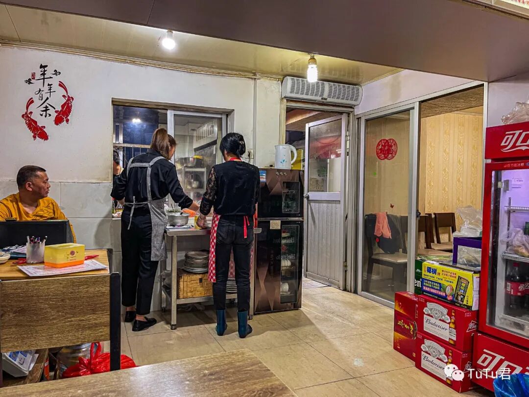 环境:很典型的苍蝇小馆,首先我是没看到招牌,看见都坐着人在那吃,那就是它没错了。整个店面有种小区一楼车库改造的感觉,内部也就四张桌子,外部又支了两张,不过间距都挺大的,没有拥挤的感觉,就是等位的话会麻烦一些。(吃饭的时候还能看见后厨忙碌的身影,小小店内抽油烟机声、炒菜声、各种交谈声交汇在一起,烟火气十足)