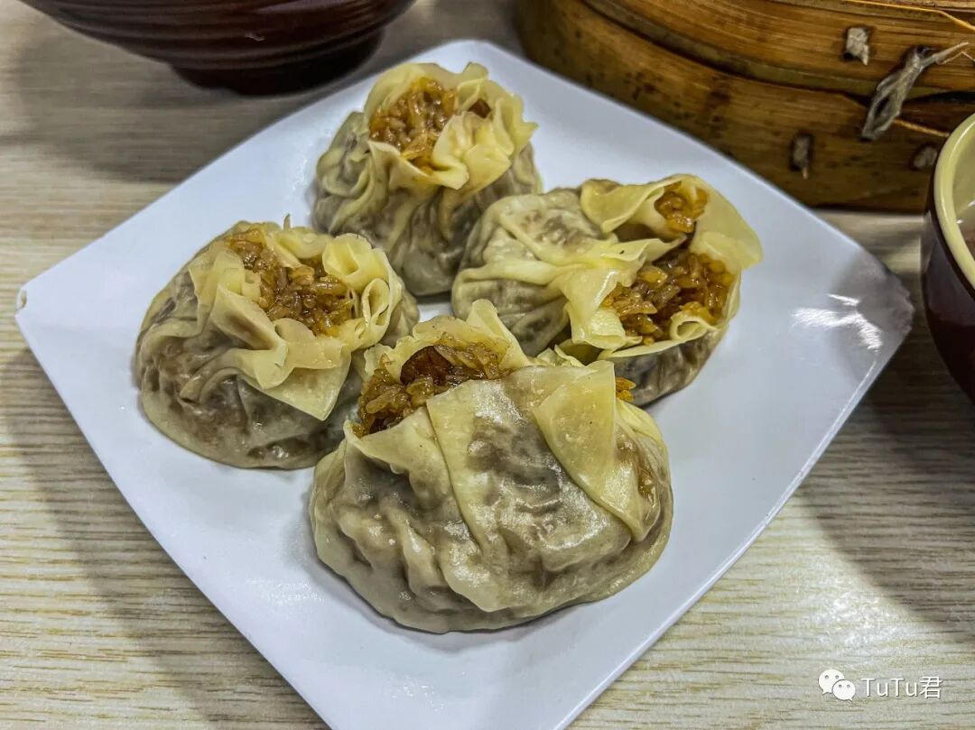 【烧麦】非常大个的烧麦,体量很大,两个下去相当顶饱,糯米蒸得很软也很多,肉比较少,只有一点点,味道也是偏甜口的,刚吃的头几口特别有味好吃,不过也是没办法多吃,吃多了就很腻。(14元4个,分量很实诚,问题也是口味太偏甜了)